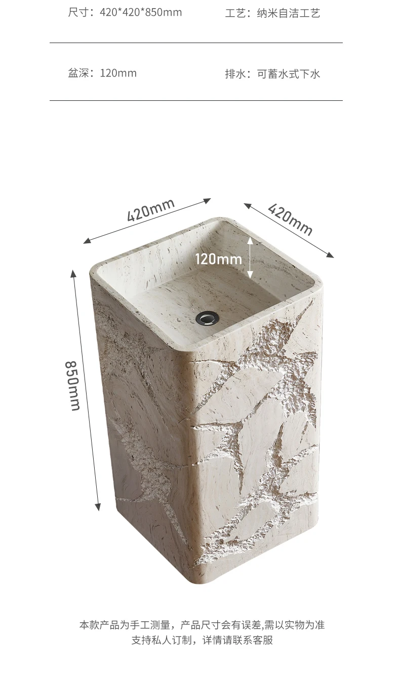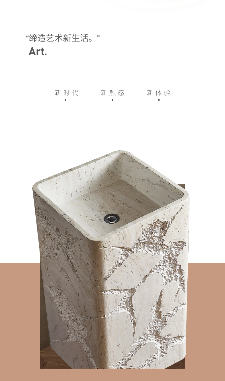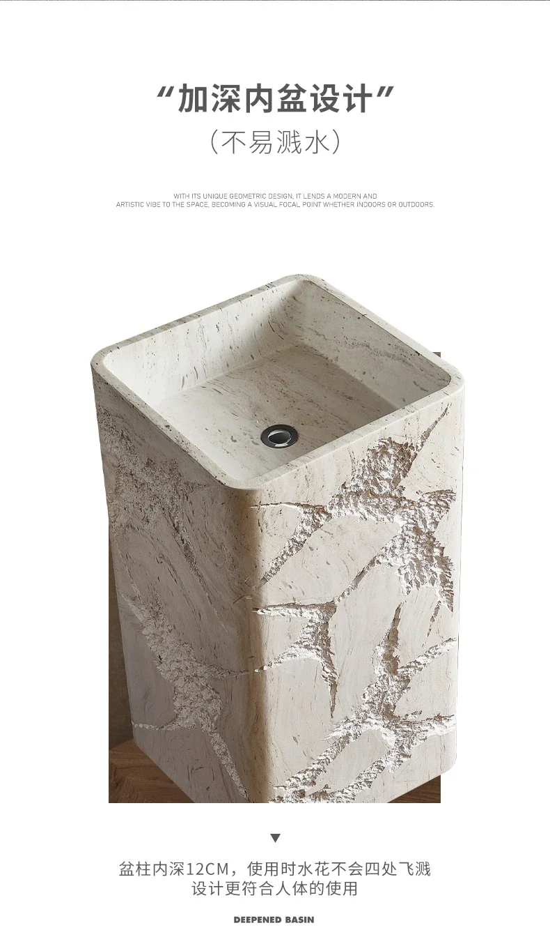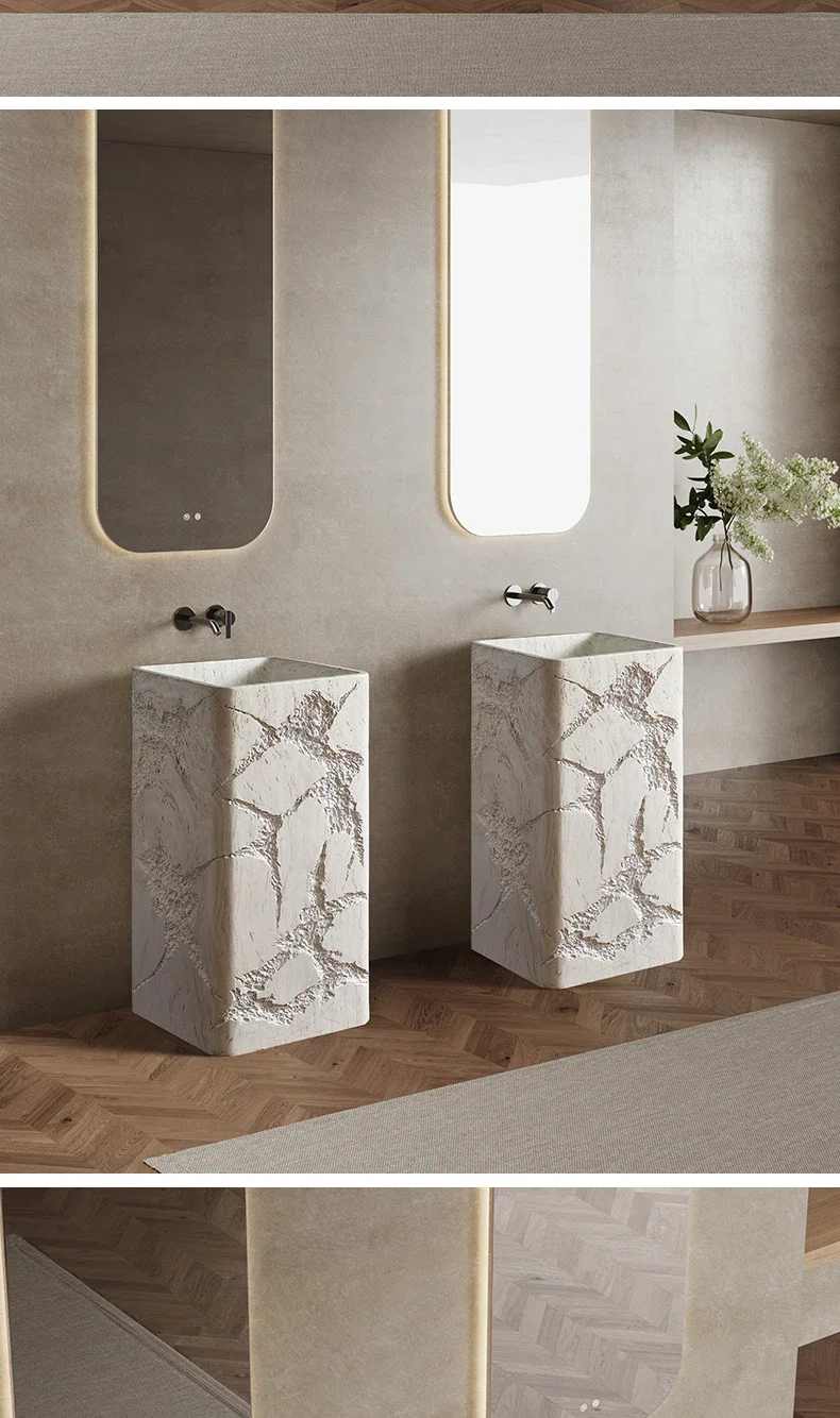 อ่างล้างหน้าทรงเสา Travertine แบบติดตั้งในตัว ตั้งแต่พื้นจรดเพดาน พร้อมอ่างล้างหน้าแนวตั้ง 1
