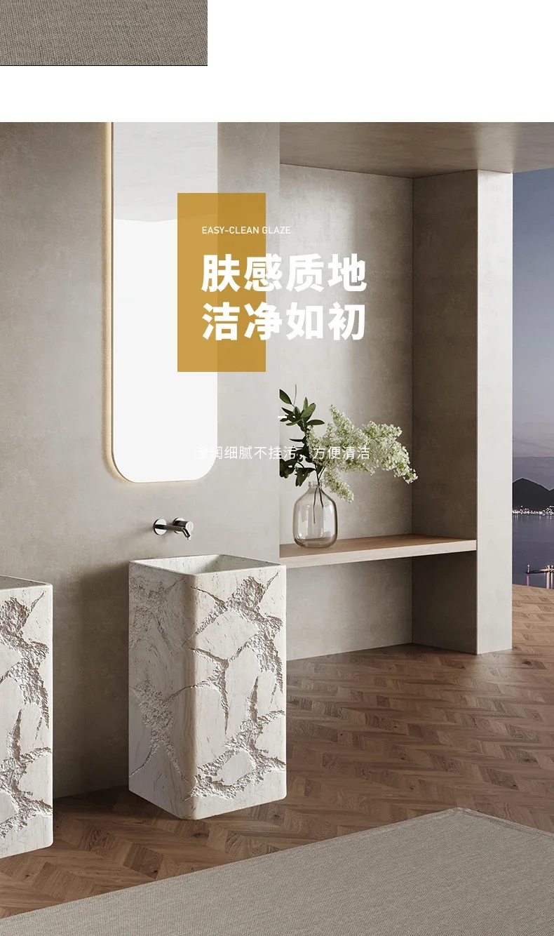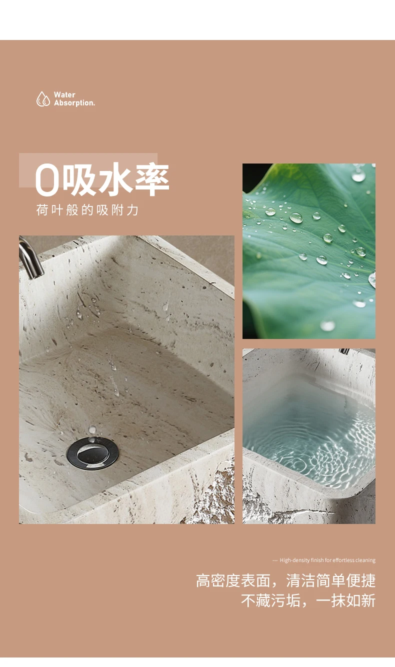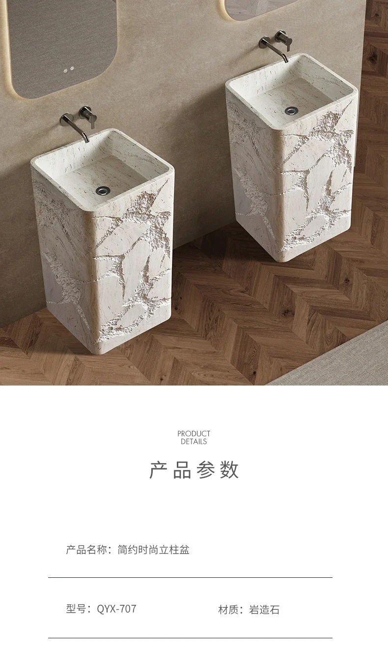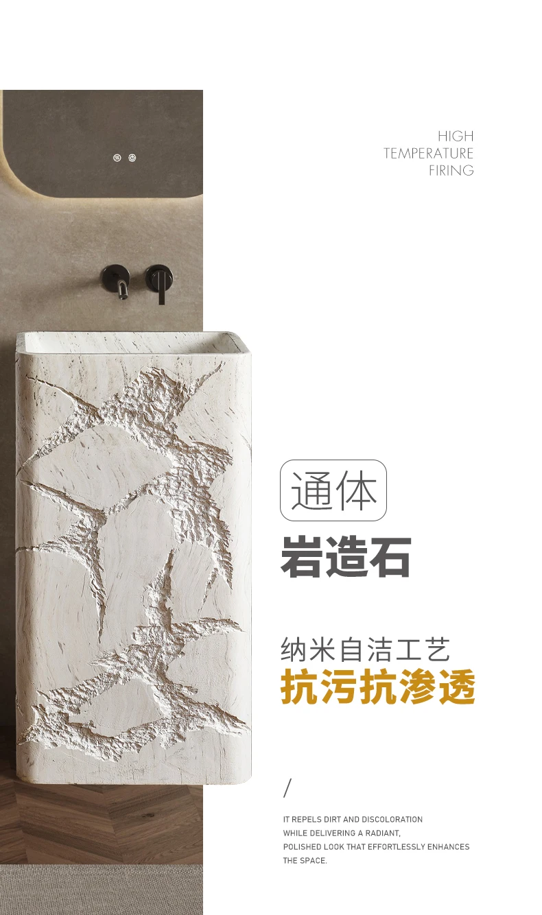 อ่างล้างหน้าทรงเสา Travertine แบบติดตั้งในตัว ตั้งแต่พื้นจรดเพดาน พร้อมอ่างล้างหน้าแนวตั้ง 1