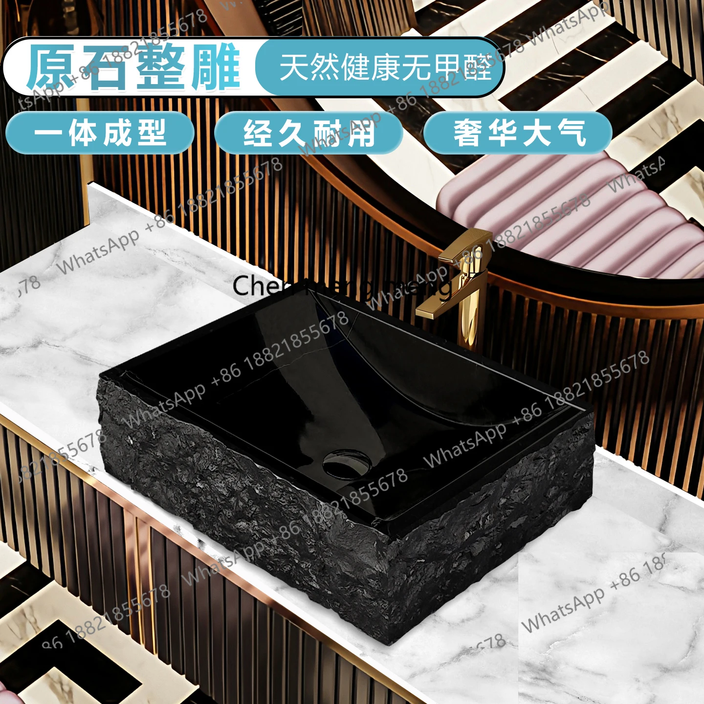 อ่างล้างหน้าหินอ่อนธรรมชาติ ลายวินด์อาร์ต ทรงสี่เหลี่ยม สำหรับโรงแรมและโฮมสเตย์ 1