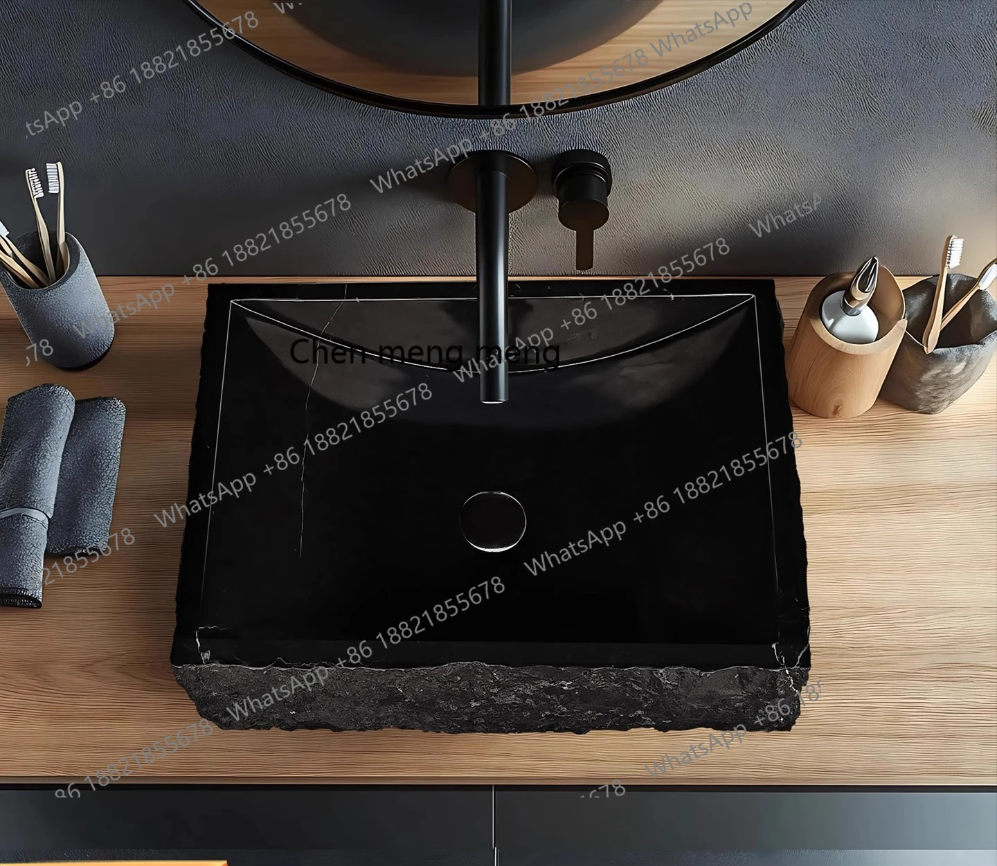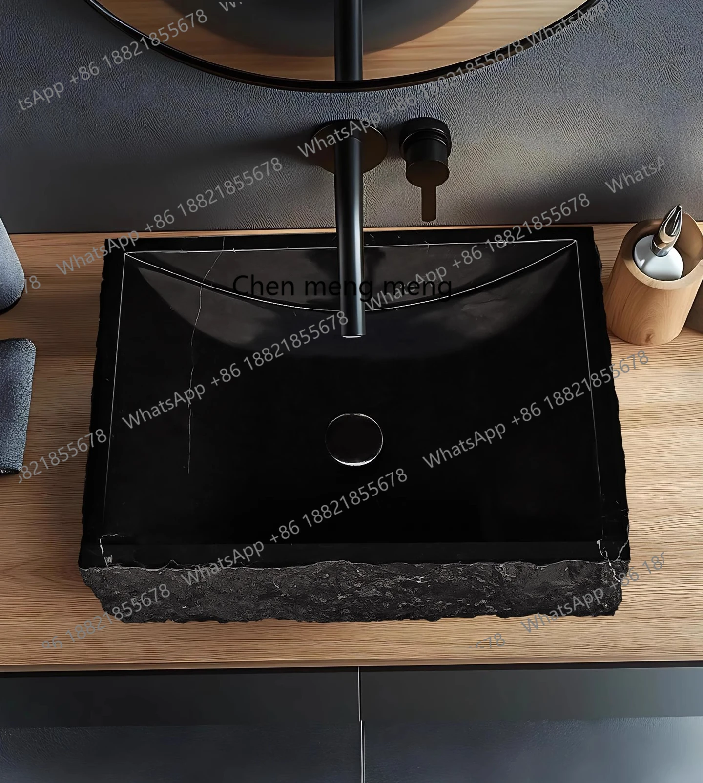 อ่างล้างหน้าหินอ่อนธรรมชาติ ลายวินด์อาร์ต ทรงสี่เหลี่ยม สำหรับโรงแรมและโฮมสเตย์