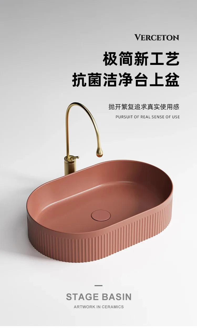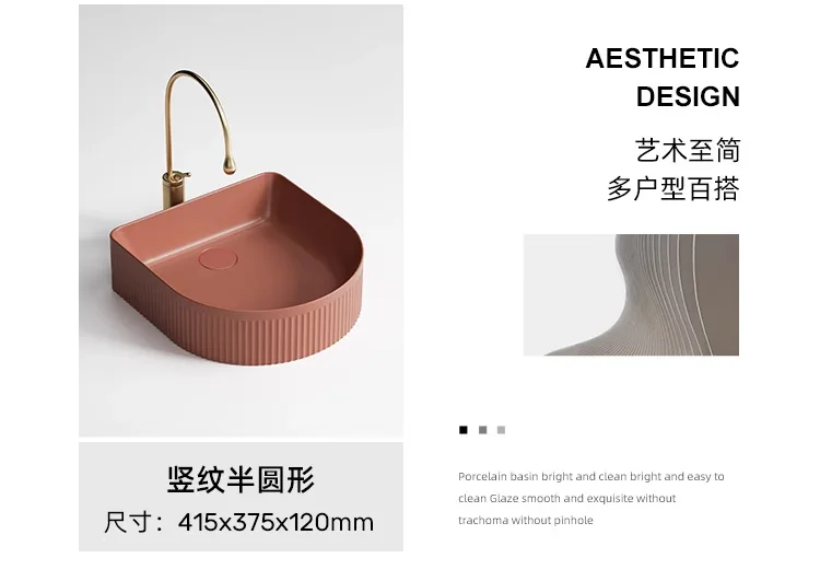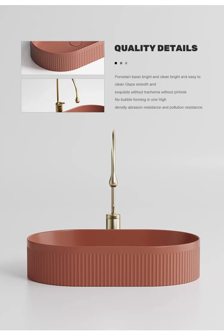 อ่างล้างหน้าเซรามิกสีแดงอิฐ อ่างล้างหน้าเดี่ยว อ่างเคาน์เตอร์สียุโรป ระเบียงห้องน้ํา อ่างล้างหน้าเชิงศิลปะ