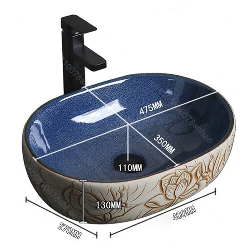 อ่างล้างหน้าเซรามิกสไตล์เรโทร อ่างล้างหน้าแบบวางบนเคาน์เตอร์ อ่างล้างหน้าดีไซน์ศิลปะสำหรับบ้าน อ่างล้างหน้าเซรามิกแบบวางบนเคาน์เตอร์ สไตล์วินเทจ 1