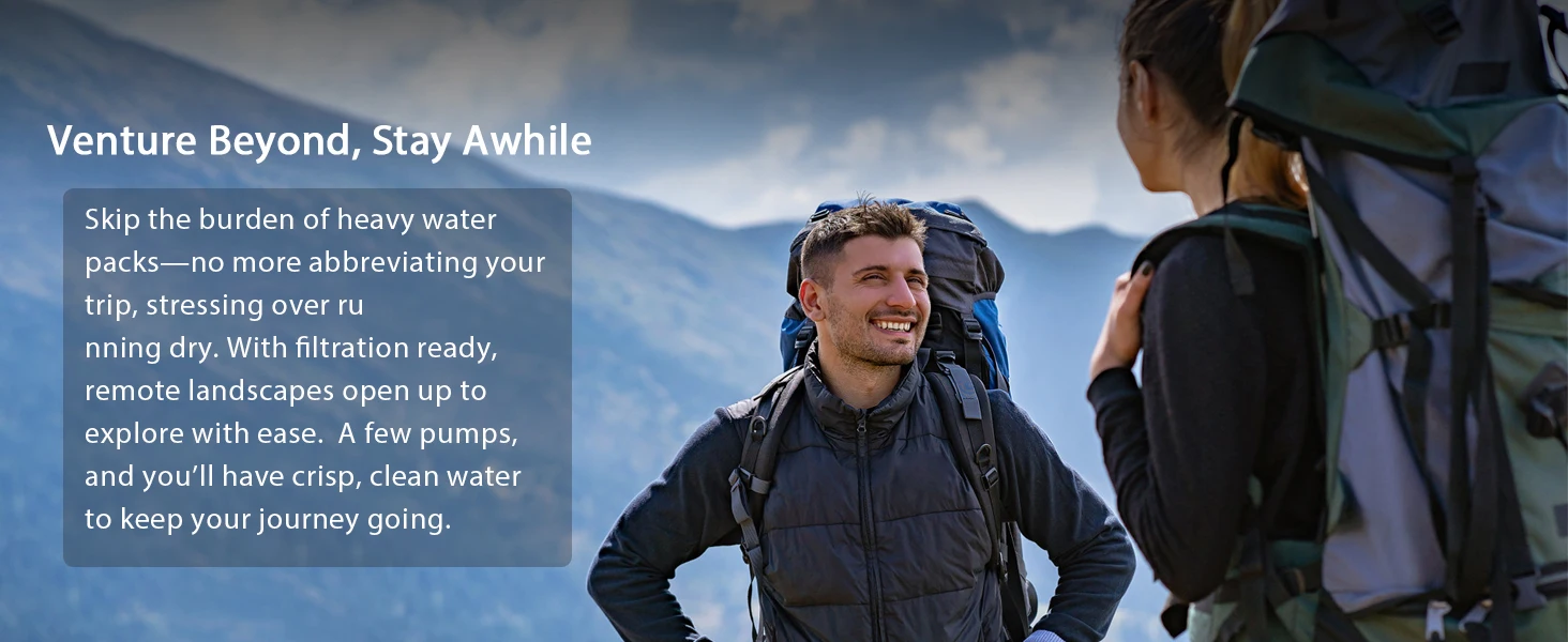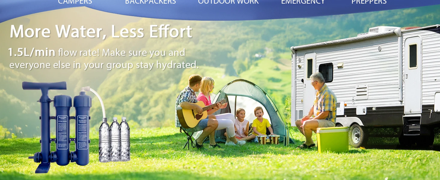 เครื่องกรองน้ำแบบปั๊มมือแบบพกพา GOOD CLOUD ได้รับการออกแบบมาสำหรับกิจกรรมกลางแจ้งและการเตรียมพร้อมในกรณีฉุกเฉินใช้ปั๊มมือ ไม่ต้องใช้ไฟฟ้า และกรองน้ำจากทะเลสาบ แม่น้ำ และแหล่งน้ำกลางแจ้งอื่นๆ ได้อย่างรวดเร็วด้วยระบบกรองประสิทธิภาพสูงสองขั้นตอน ทำให้ได้น้ำดื่มที่ปลอดภัย