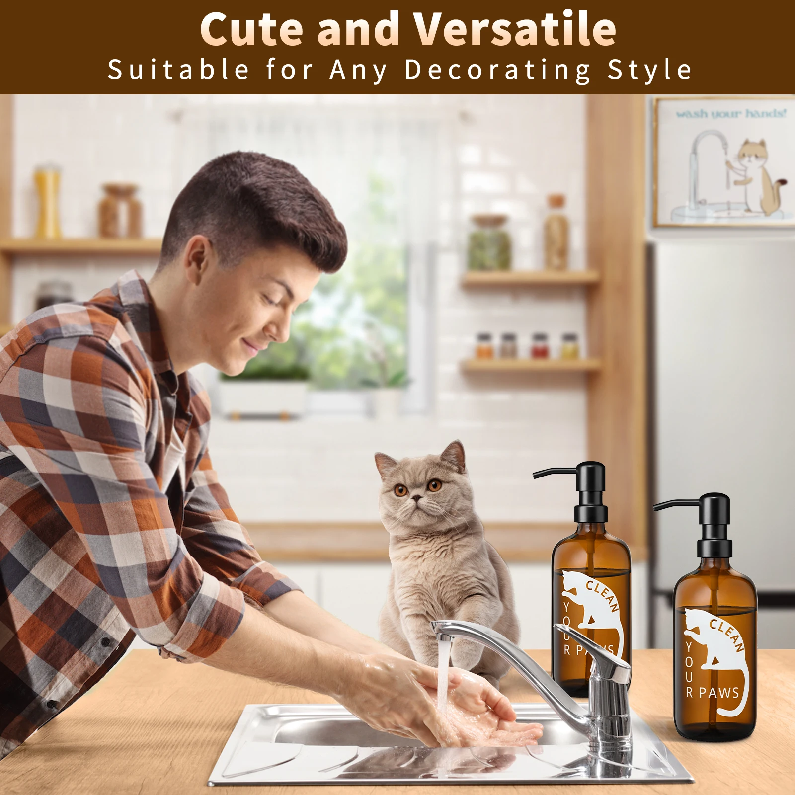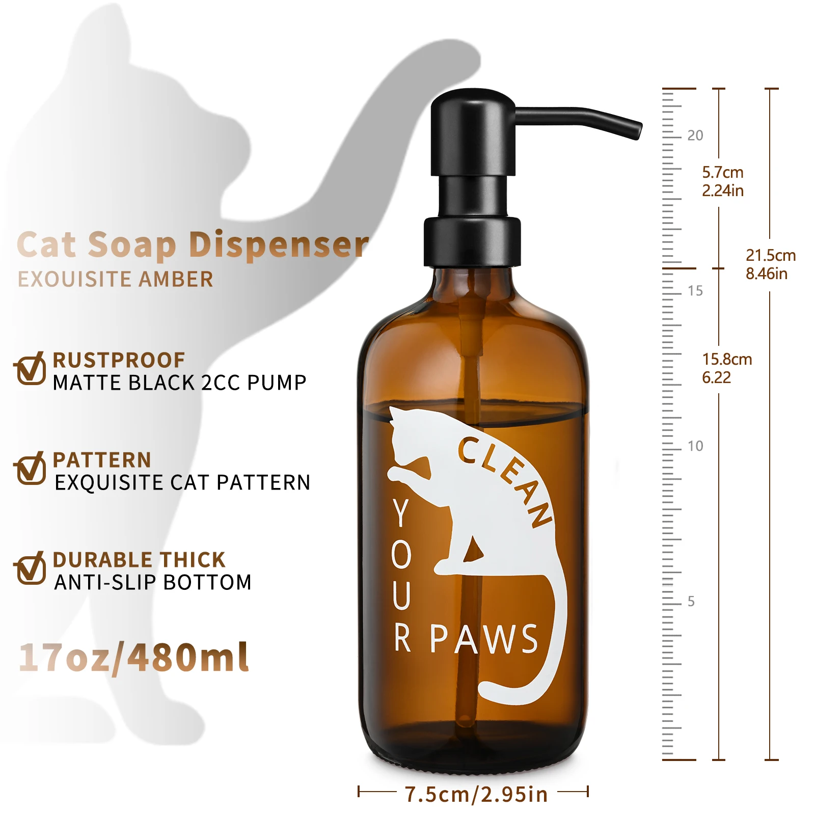เครื่องจ่ายสบู่แก้วสีเหลืองอําพันกลมบอสตันพร้อมรูปแบบสัตว์เลี้ยงสําหรับห้องน้ําและตู้ทําสบู่เคาน์เตอร์ครัว