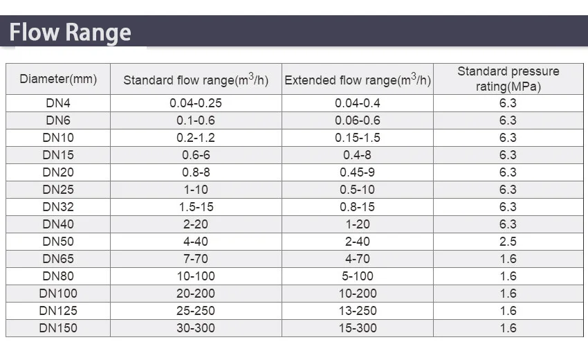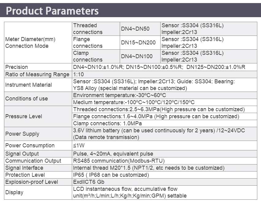 ตัวเลือกข้างต้นคือเส้นผ่านศูนย์กลางที่แตกต่างกันสำหรับเครื่องวัดการไหลของกังหันพารามิเตอร์เริ่มต้นของเครื่องวัดการไหลมีดังนี้: