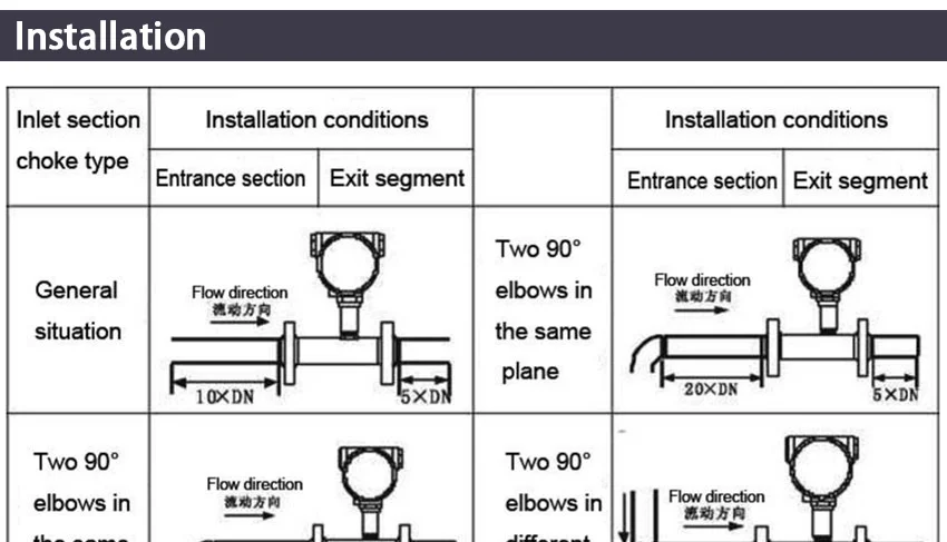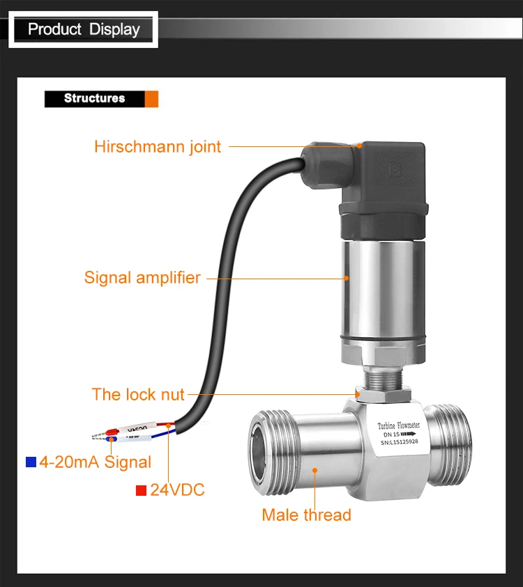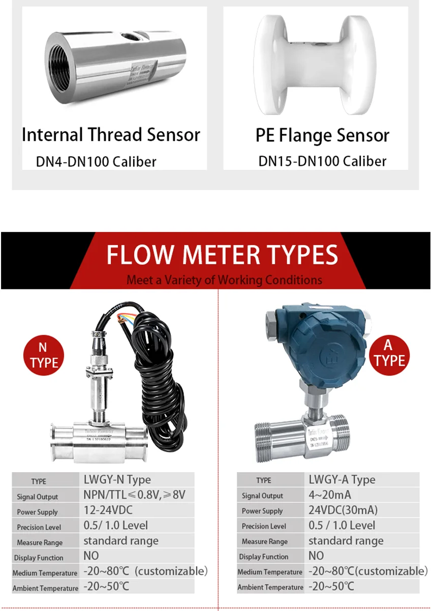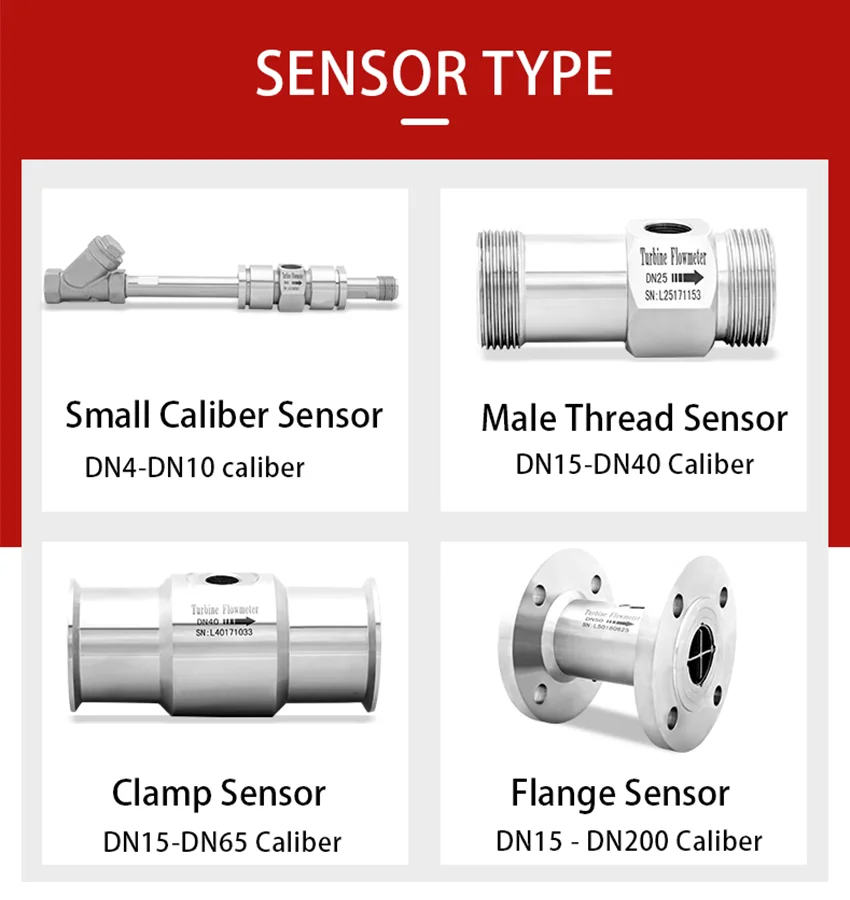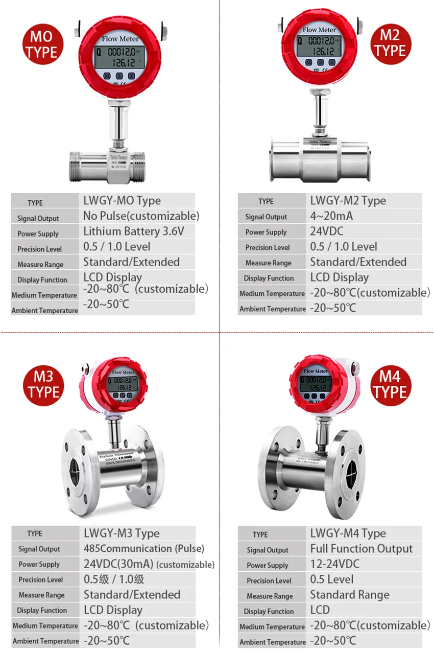 ตัวเลือกข้างต้นมีเส้นผ่านศูนย์กลางต่างกันสําหรับมิเตอร์วัดการไหลของกังหันพารามิเตอร์พื้นฐานดังต่อไปนี้: