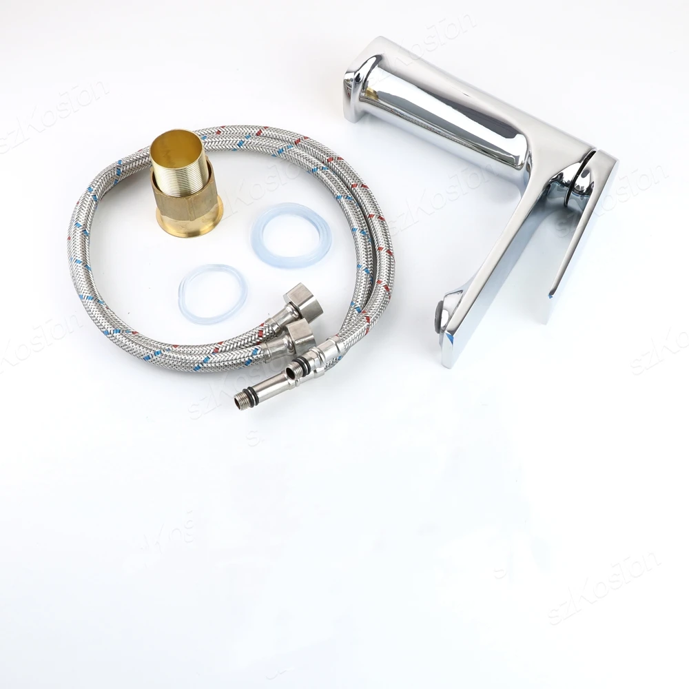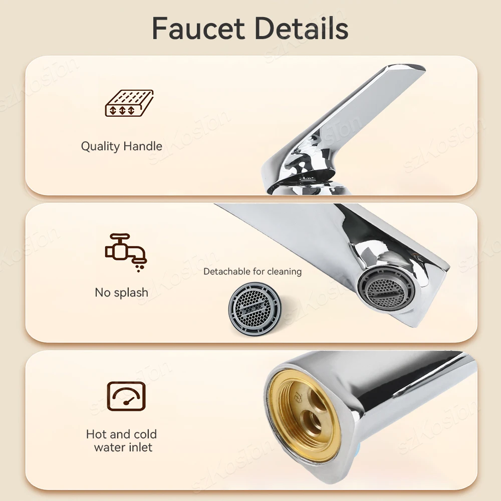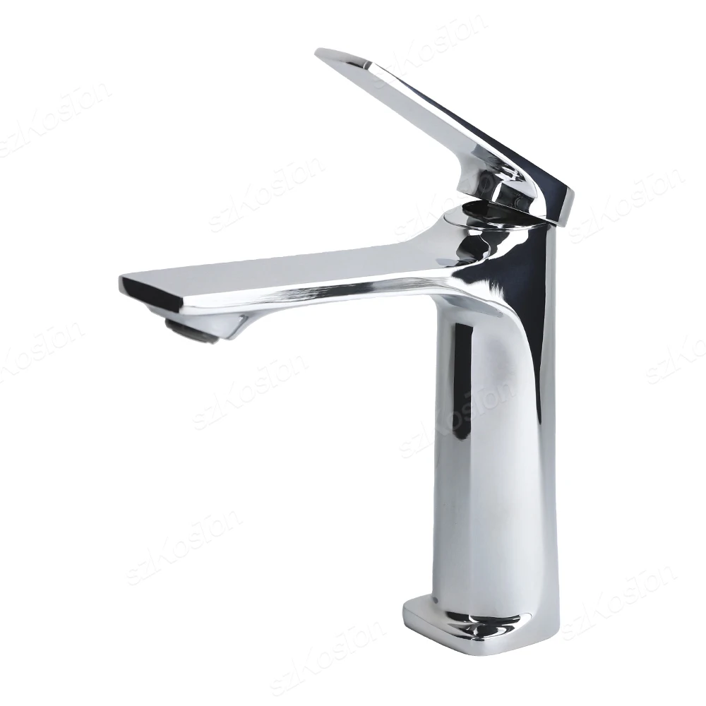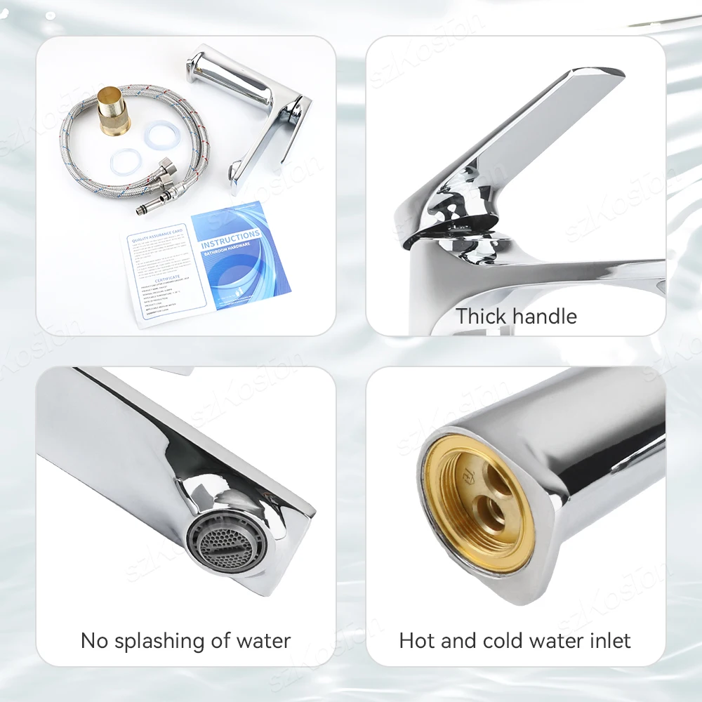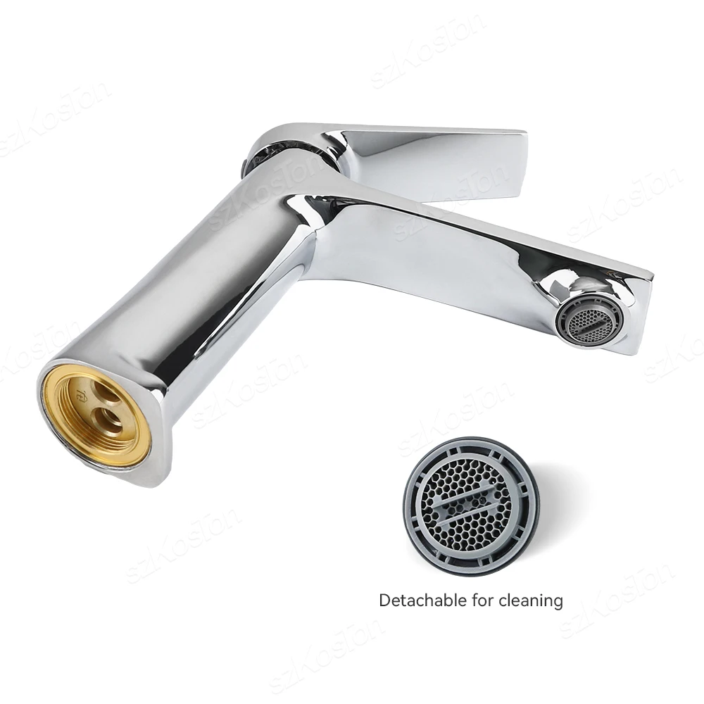 แกนทองเหลืองก๊อกน้ำซิงค์ห้องน้ำแบบทันสมัยจับเดี่ยวติดตั้งบนดาดฟ้าอ่างล่างหน้าก๊อกน้ำร้อนและเย็น