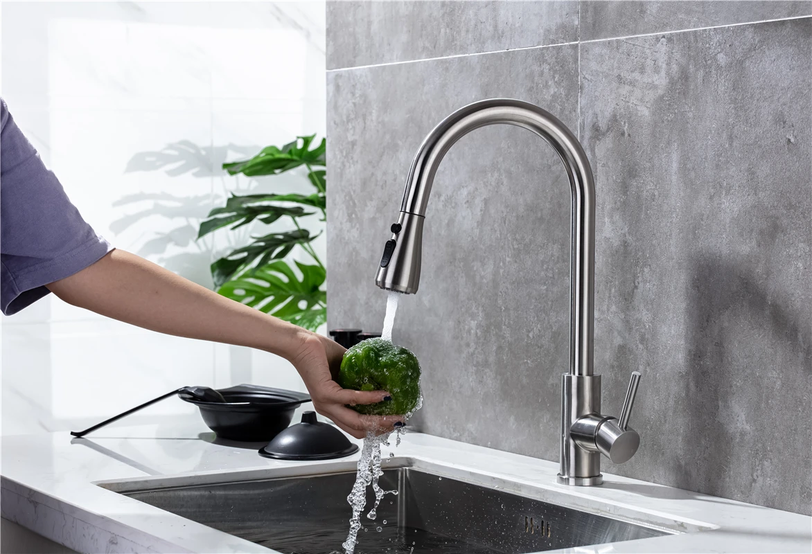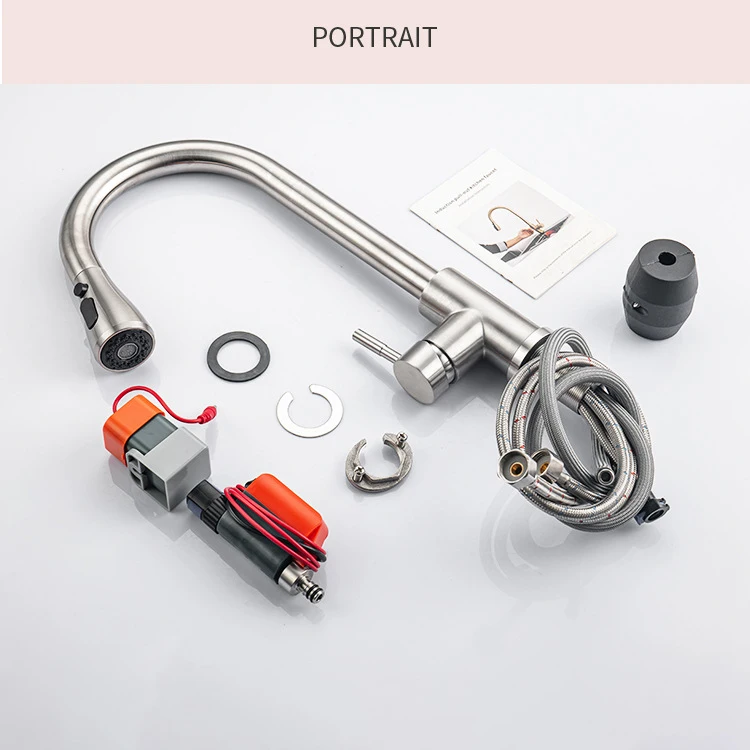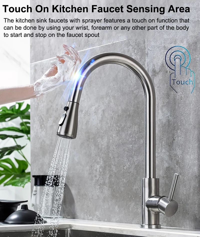 แปรงนิกเกิล Touch บนอ่างล้างจานก๊อกน้ําอุปกรณ์เสริมร้อนเย็นดึงออกอ่างล้างจาน Tap สมาร์ท Touch ก๊อกน้ําห้องครัว 1