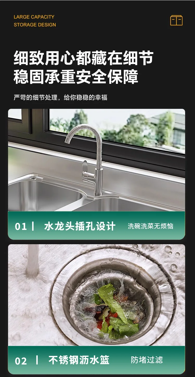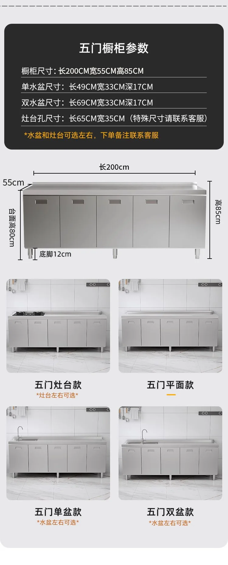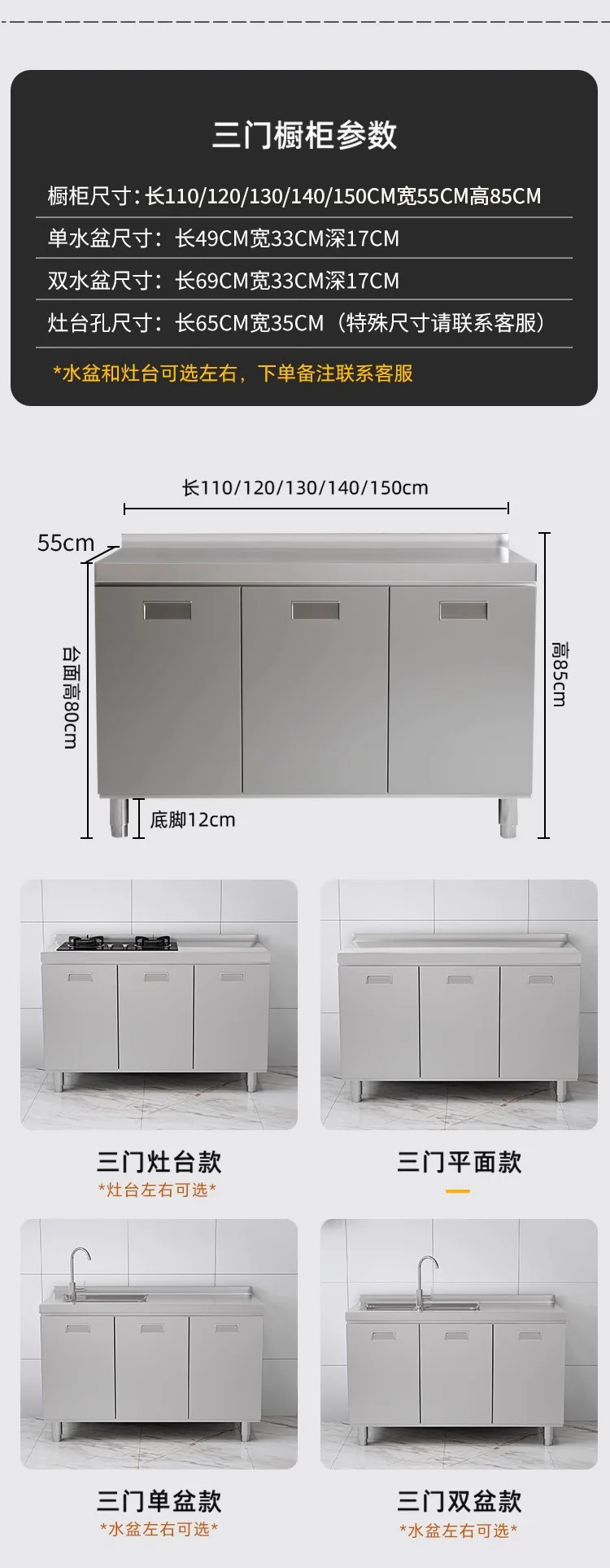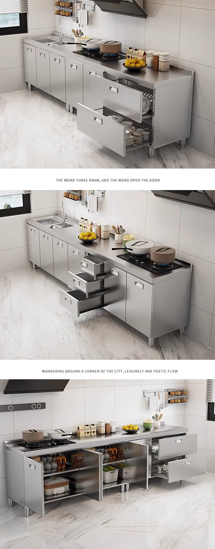 แหล่งที่มาโรงงานห้องครัวตู้ครัวสแตนเลสแบบบูรณาการ 304 เคาน์เตอร์รวมในครัวเรือนตู้สําเร็จรูปเช่าเตา