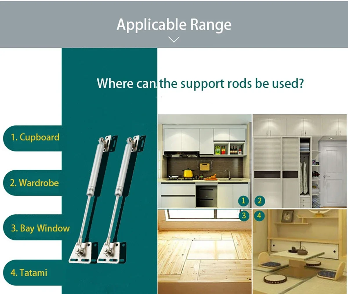 Application scope: suitable for flipping wooden doors, aluminum frame doors, can be used for cabinets, closets, floating windows, tatami mats, etc. .
