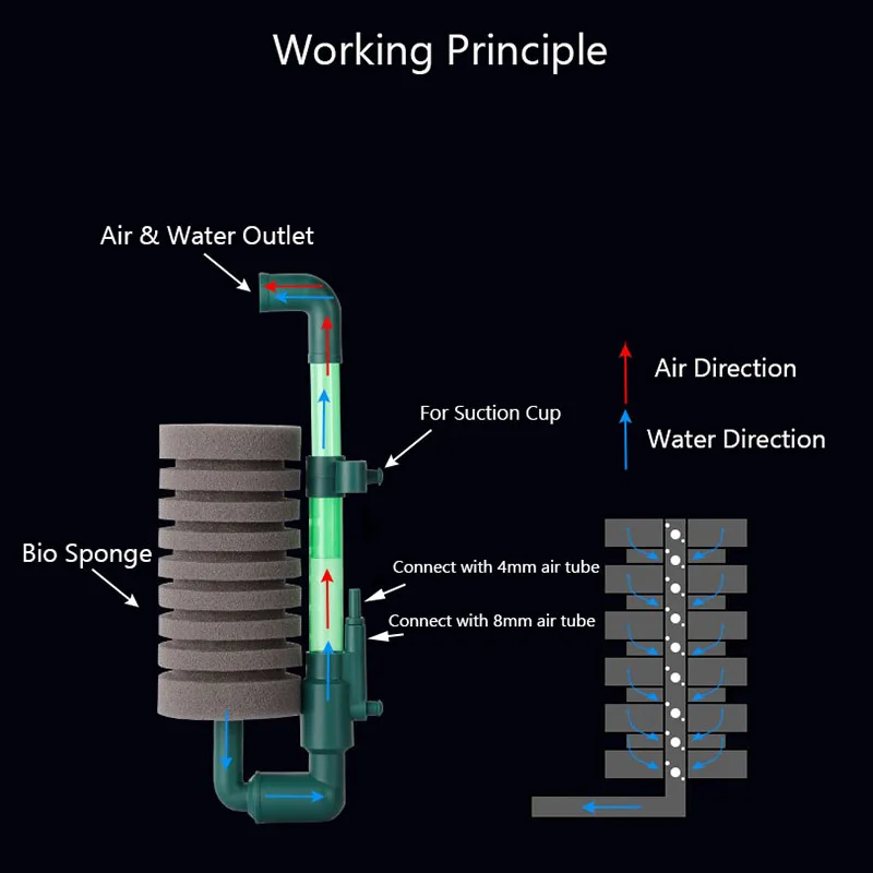 ตัวกรองฟองน้ําชีวเคมีให้การกรองทางชีวภาพแก่ตู้ปลา ช่วยให้คุณภาพน้ําคงที่