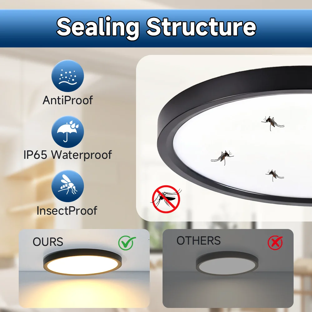 【กันน้ำ IP65】: ปลอดภัยสำหรับห้องน้ำ ห้องครัว และระเบียง