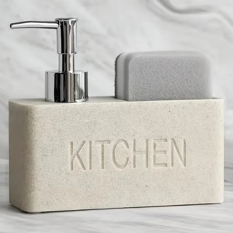 วัสดุเรซิน: ขวดใส่สบู่ในครัวทําจากตัวเรซิน + หัวฉีดพลาสติก รูปลักษณ์หรูหราและทนทาน เหมาะสําหรับห้องครัวหรือห้องน้ํา สามารถใช้งานได้นาน