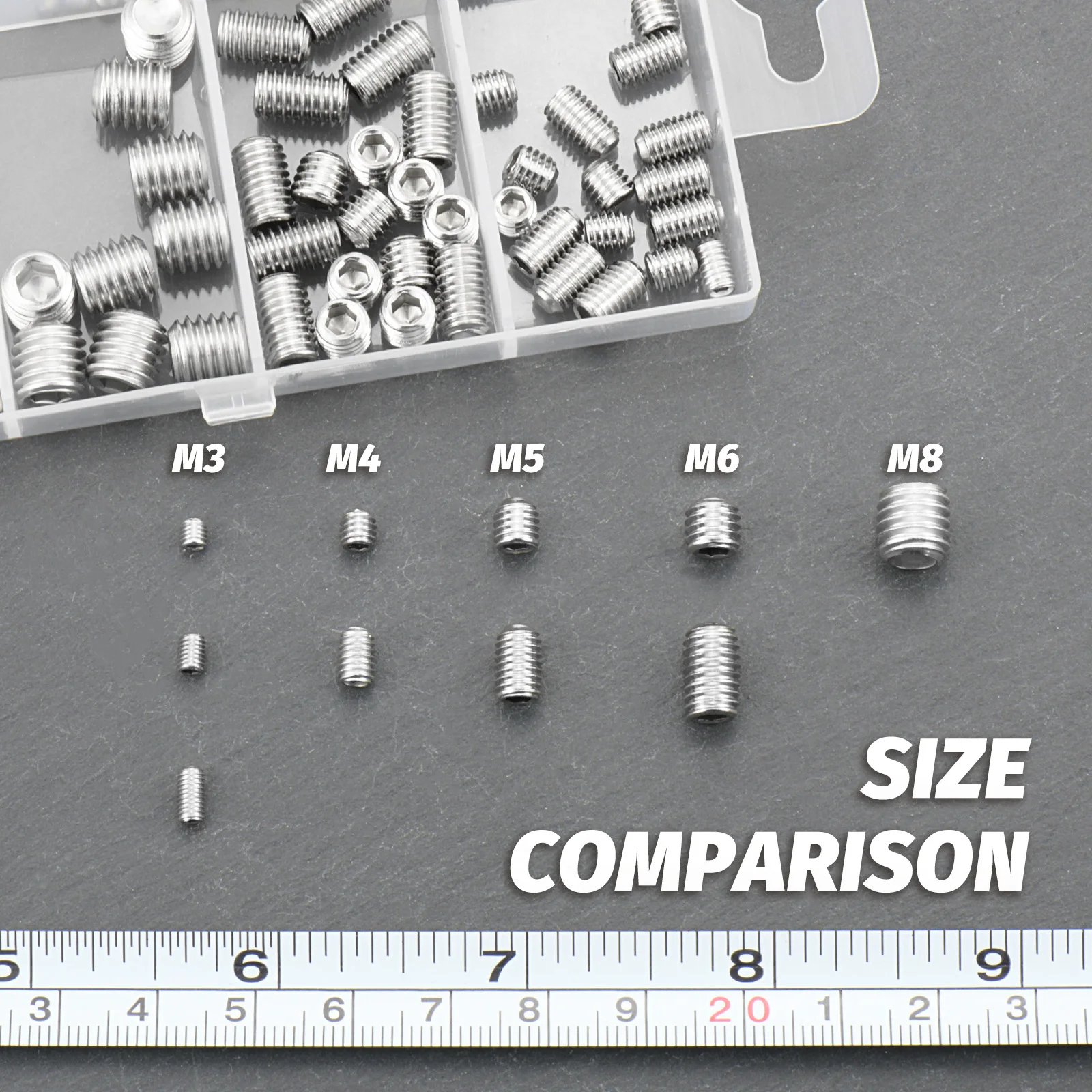 • ชุดที่สะดวก: ประกอบด้วยสกรูตัวหนอน 100 ชิ้นพร้อมกับประแจอัลเลน 5 ดอก (S1.5, S2, S2.5, S3 และ S4) เพื่อให้ติดตั้งง่ายจัดเรียงในกล่องพลาสติกที่แข็งแรงเพื่อการเข้าถึงและการจัดเก็บที่รวดเร็ว