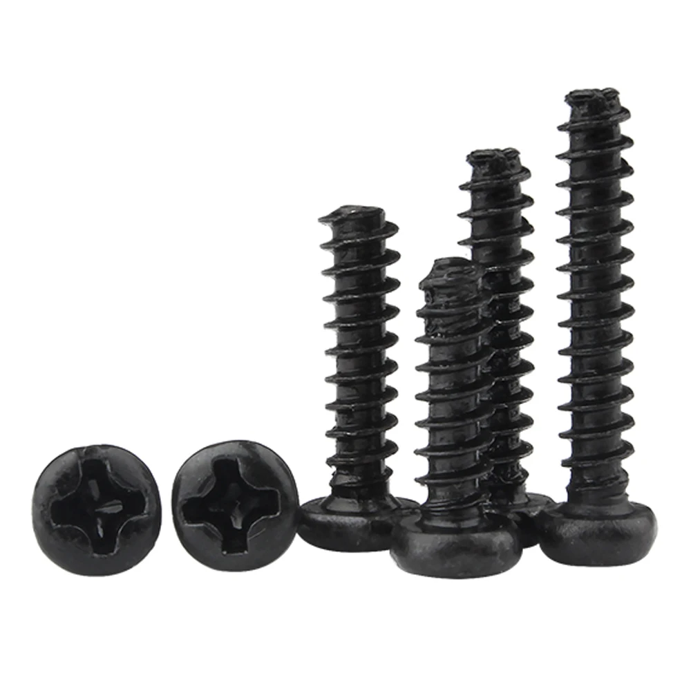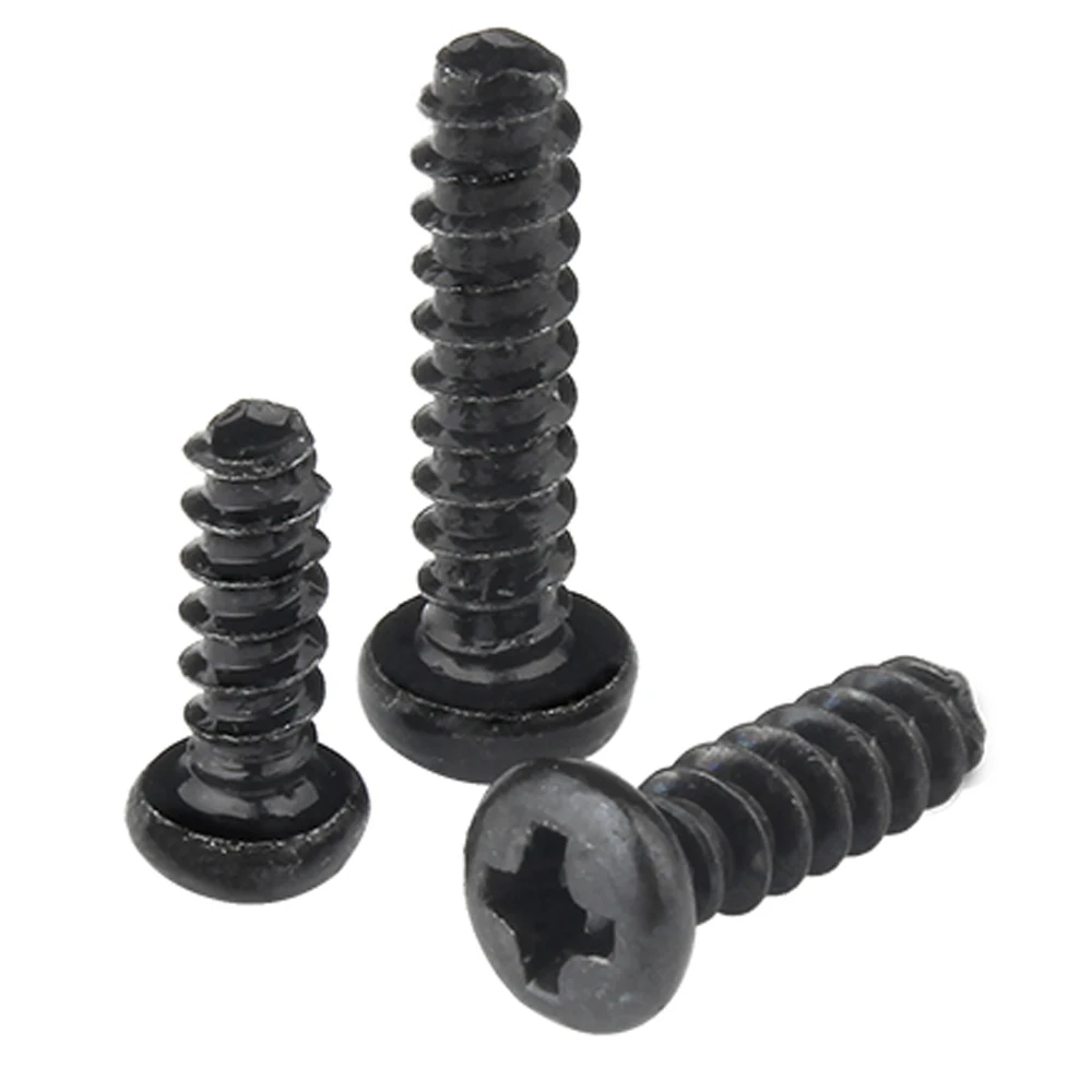ชื่อผลิตภัณฑ์: 100 ชิ้น M1 M1.2 M1.4 M1.7 M2 M2.3 M2.6 M3 M3.5 M4 M5 Cross Recessed PAN HEAD สกรูเกลียวสีดําเหล็กคาร์บอน Phillips