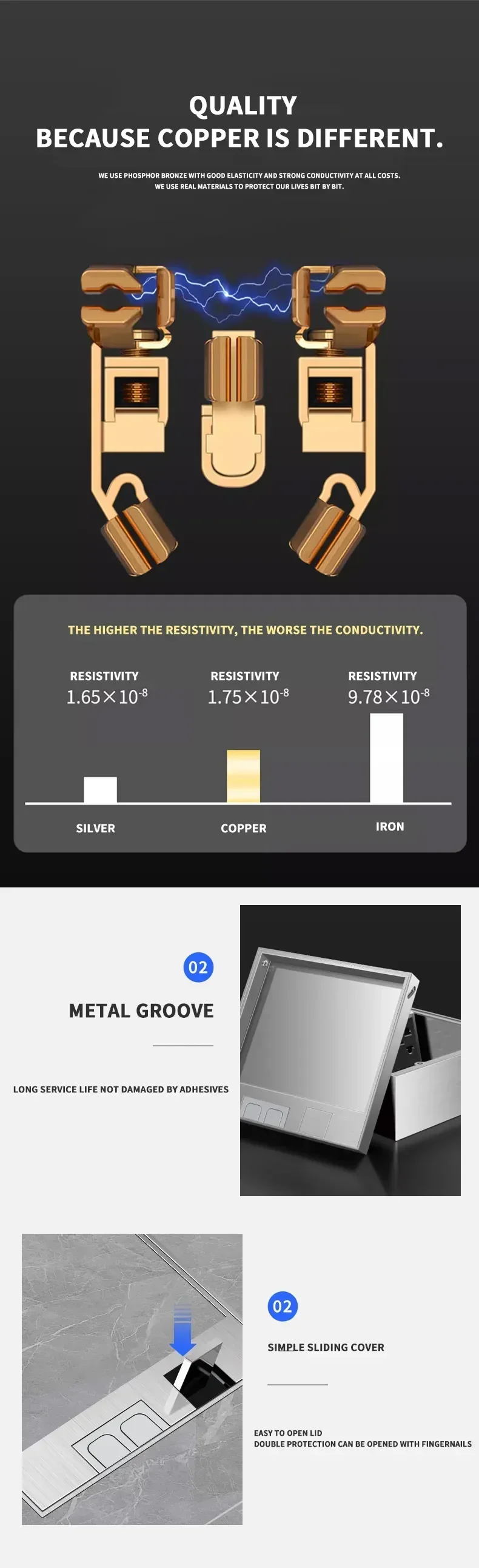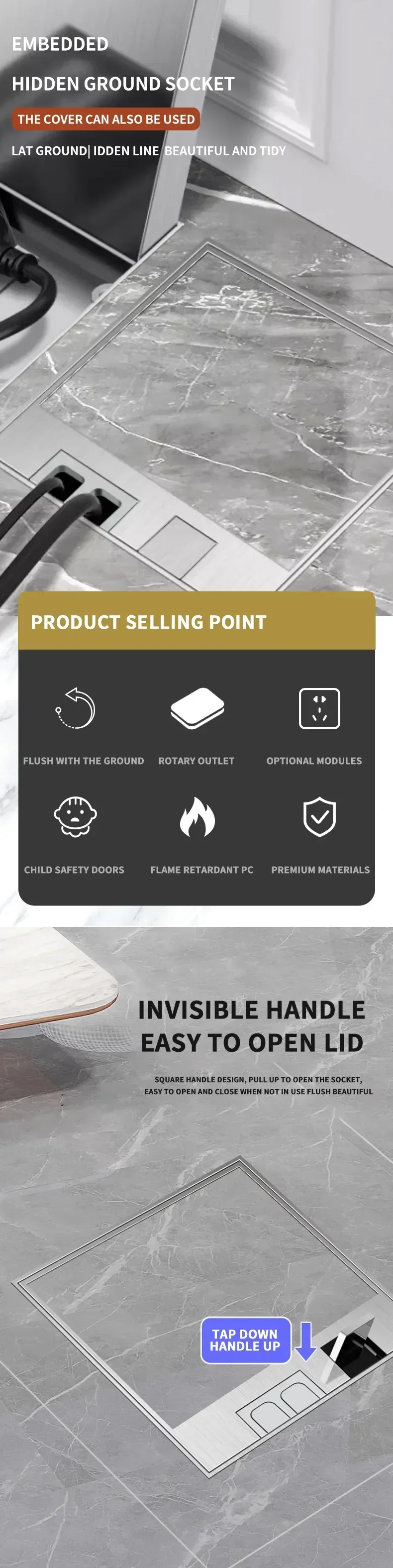130 มม.x 130 มม.บางเฉียบฝังสแตนเลสซ่อนชั้นซ็อกเก็ตที่มองไม่เห็นแบนแผง EU/US/UK/FR/UN Universal Adapter 1