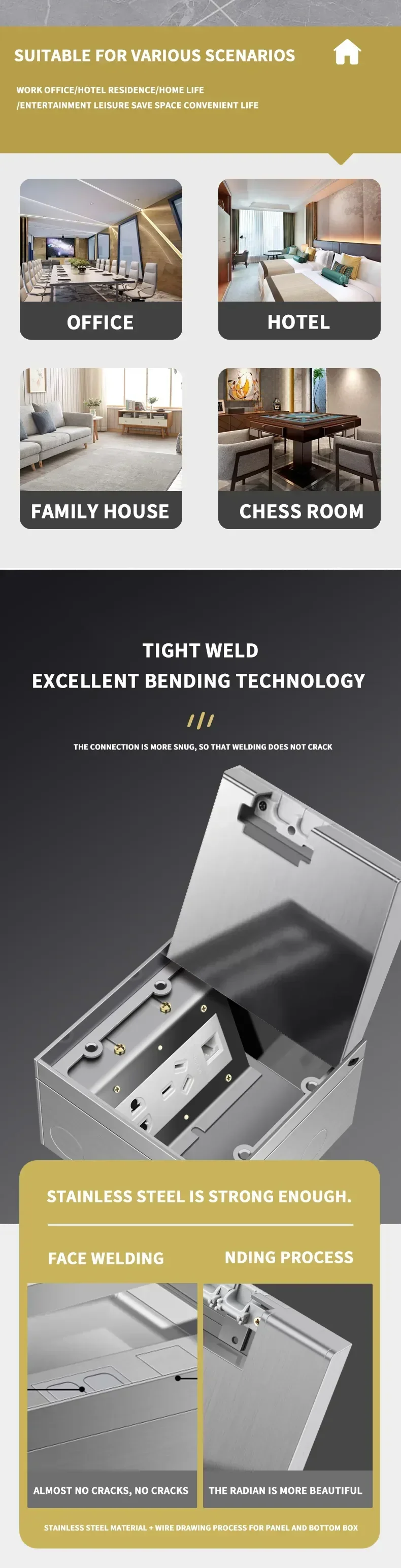 เป็นคนแรกที่จะอ่าน"130 มม.x 130 มม.บางเฉียบฝังสแตนเลสซ่อนชั้นซ็อกเก็ตที่มองไม่เห็นแบนแผง EU/US/UK/FR/UN Universal Adapter"
