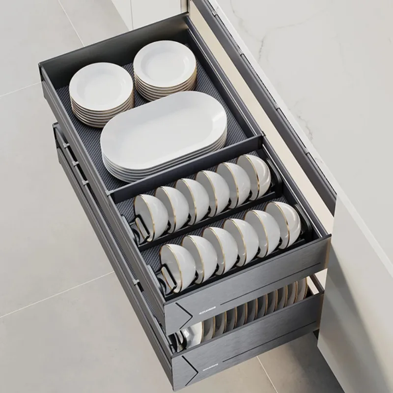 3 ชั้นตู้ครัวภายในOrganizerดึงชั้นวางจานMulti-Functionช้อนส้อมตะกร้าลิ้นชัก