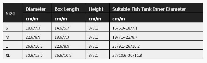 ขนาด เส้นผ่านศูนย์กลาง ความยาวกล่อง ความสูง เส้นผ่านศูนย์กลางภายในตู้ปลาที่เหมาะสม