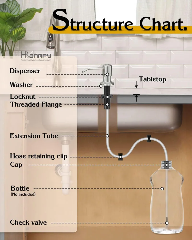 ตู้ทําสบู่นี้มีการออกแบบการติดตั้งที่ปลอดภัย ซึ่งช่วยให้ท่อต่อสามารถติดเข้ากับขอบอ่างล้างหน้าได้โดยตรง ทําให้เคาน์เตอร์สะอาดและประหยัดพื้นที่อันมีค่า