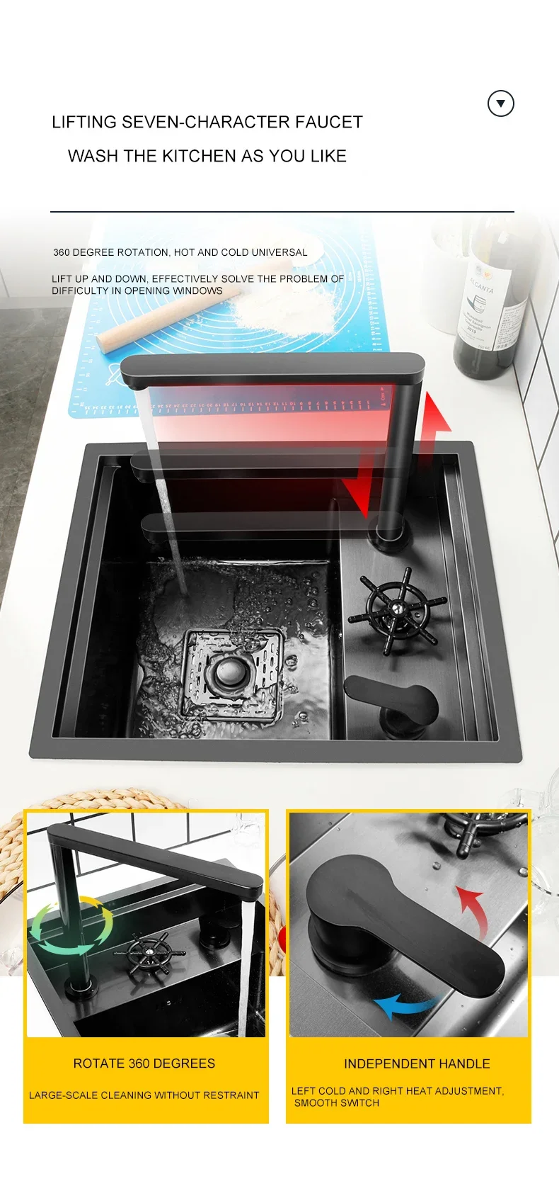 4 การออกแบบการผันแบบเฉียง ไม่มีการสะสมน้ําในอ่างล้างจานอีกต่อไป และการระบายน้ําอย่างรวดเร็ว