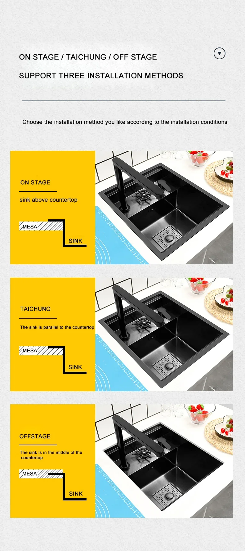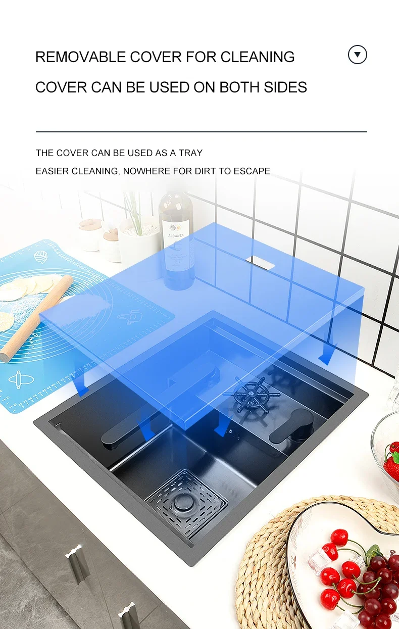 1 พื้นผิวของอ่างล้างจานเรียบไม่ปนเปื้อนฝุ่นง่ายและทําความสะอาดง่าย