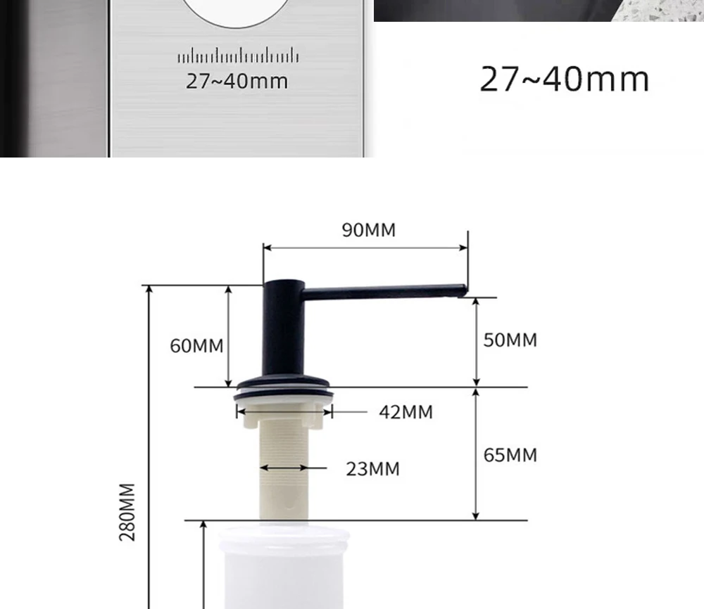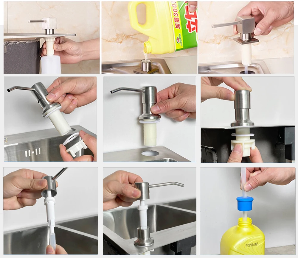 เคาน์เตอร์สบู่เครื่องสูบน้ำเหมาะสำหรับห้องครัว.