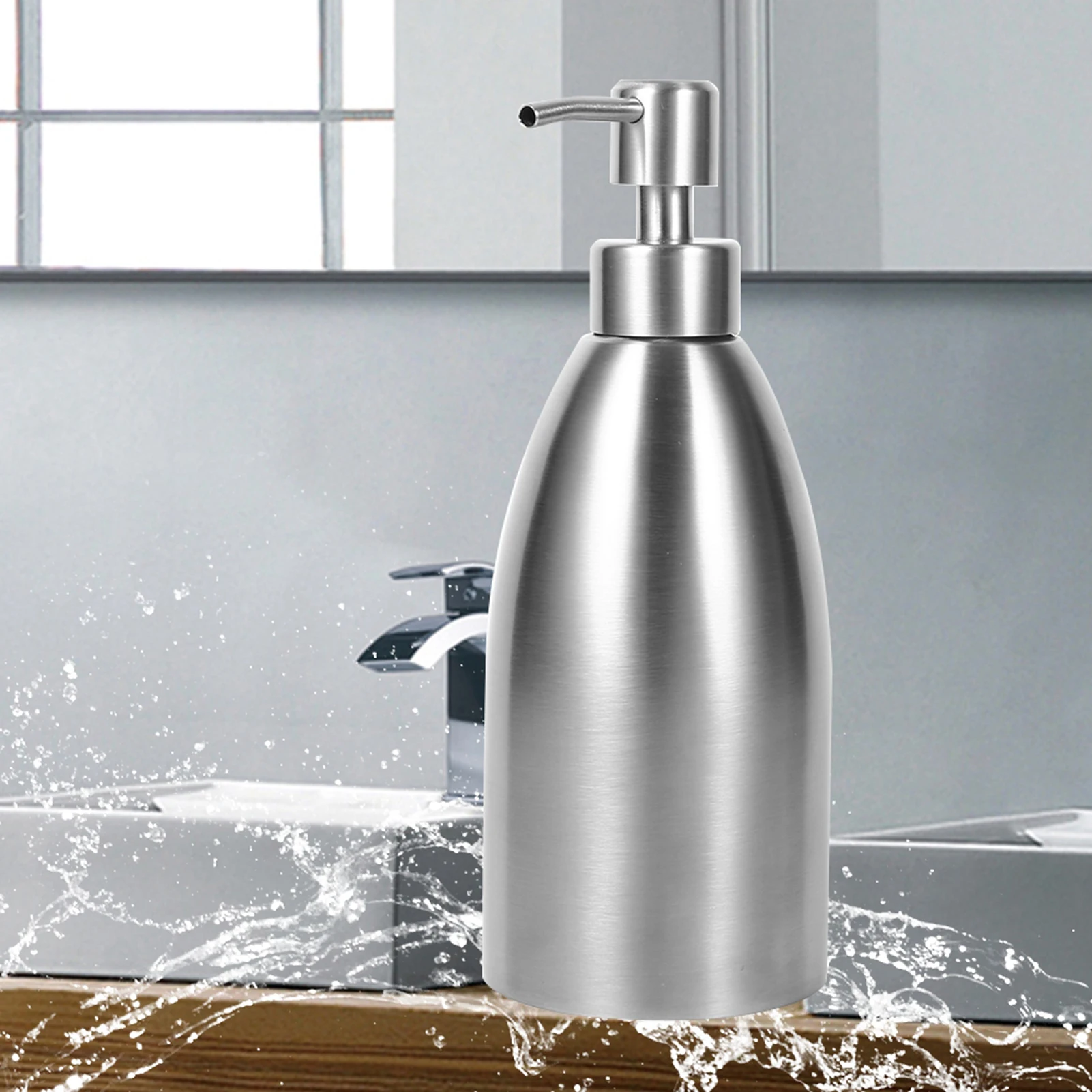 500ml สแตนเลสสตีลเครื่องจ่ายสบู่อ่างล้างจานก๊อกน้ําห้องน้ําแชมพูกล่องสบู่คอนเทนเนอร์เติม Liquid Dispenser