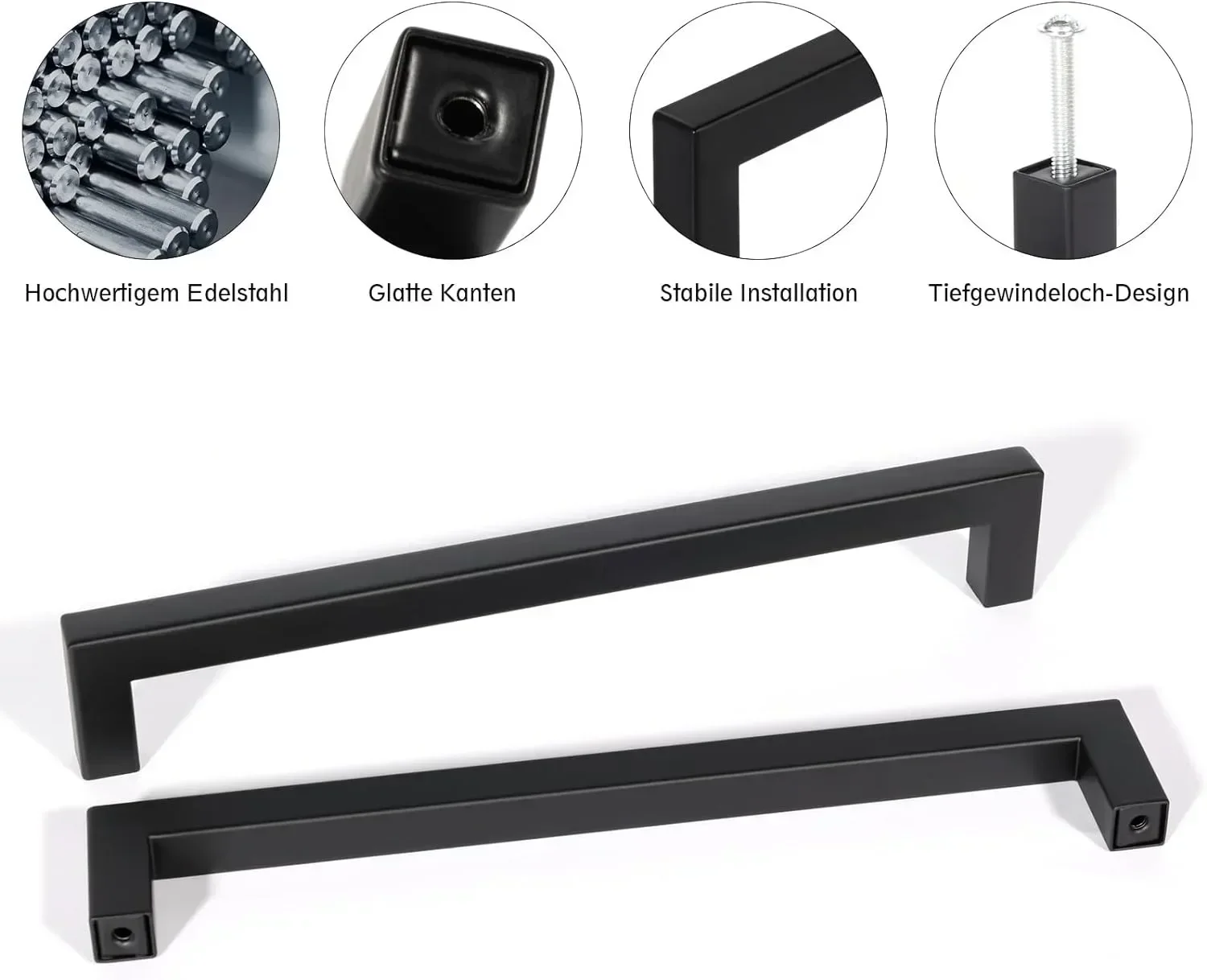 6 ชิ้นสแควร์เฟอร์นิเจอร์ฮาร์ดแวร์ตู้จับสแตนเลสลูกบิดประตูตู้ลิ้นชักดึง 64 มิลลิเมตร 128 มิลลิเมตร 160 มิลลิเมตร 224 มิลลิเมตร 256 มิลลิเมตร