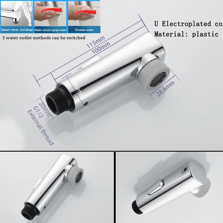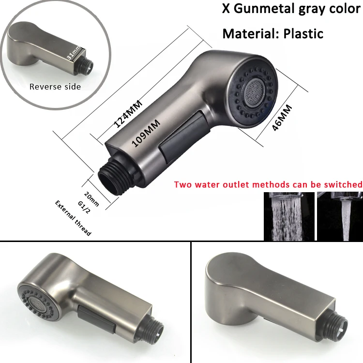3、K is a spray gun, only by pressing the handle can get out of water.K can not switch the water outlet mode