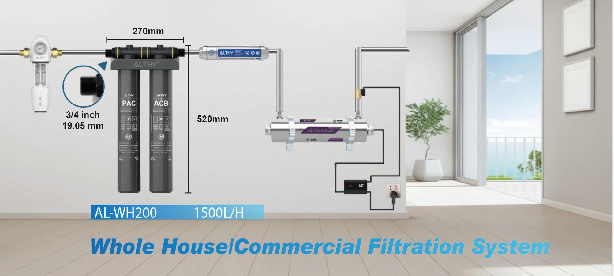 【การกรองที่มีประสิทธิภาพ】ระบบเครื่องกรองน้ํา ALTHY AL-WH200 ทั้งบ้านสามารถกําจัดคลอรีนที่ตกค้าง โลหะหนัก ตะกอน สนิม สารเคมี และกลิ่นไม่พึงประสงค์ในน้ําได้ 99%สามารถปรับปรุงรสชาติการดื่มของน้ําได้อย่างมาก และมอบน้ํามีชีวิตคุณภาพสูงและดีต่อสุขภาพให้กับคุณและครอบครัว