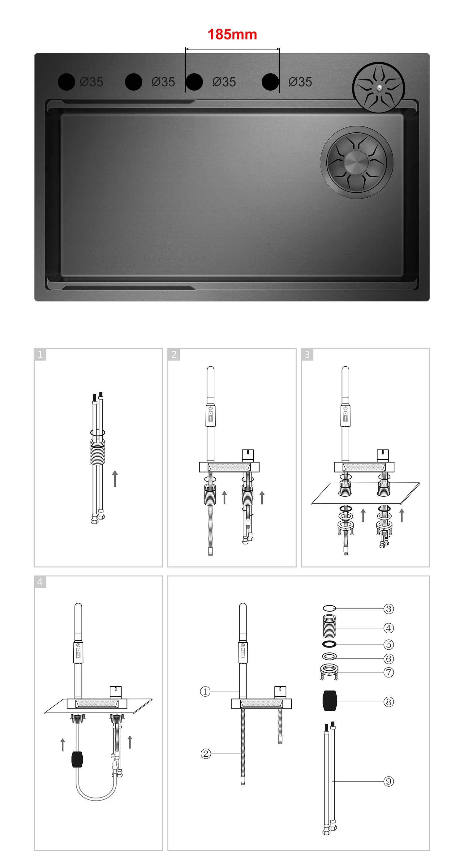 | จำนวนรูสำหรับการติดตั้ง | 2 หลุม |