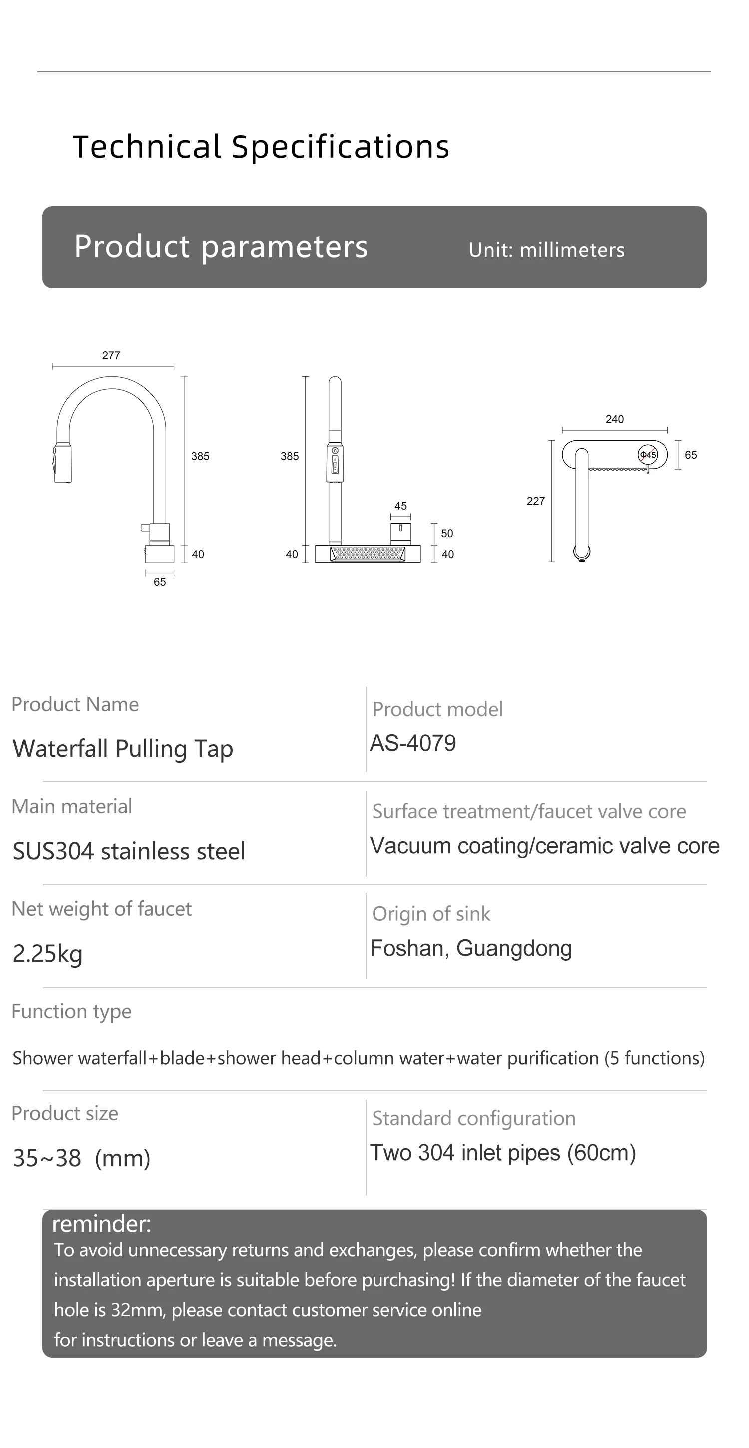 | การตกแต่งพื้นผิว | สแตนเลส |