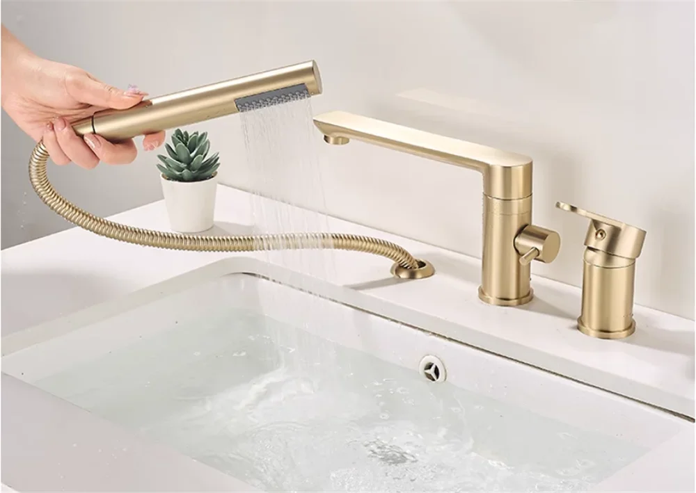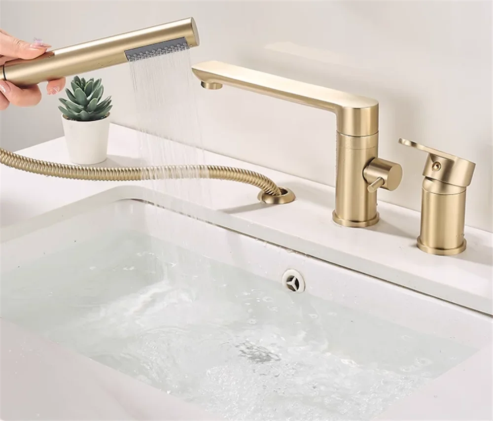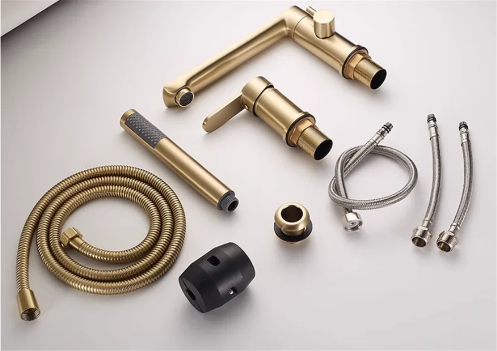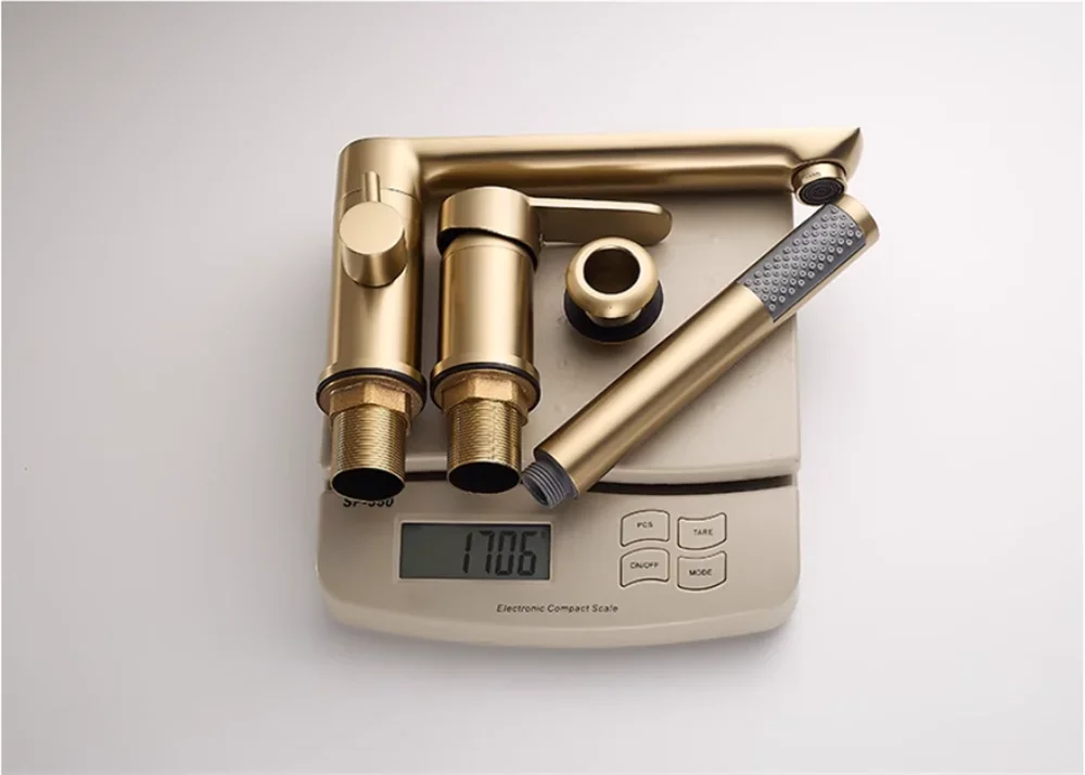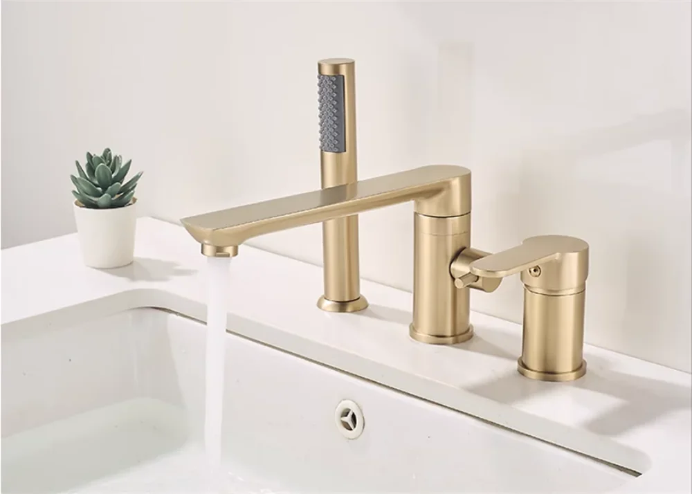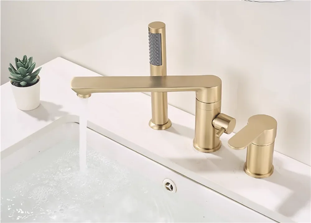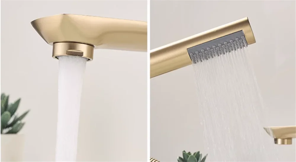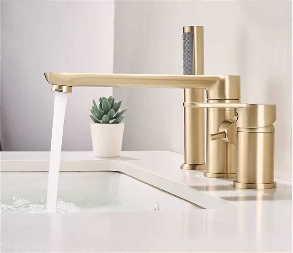 Brushed Gold ก๊อกน้ําอ่างอาบน้ําอ่างอาบน้ําอ่างล้างจาน TAP สีดําทองเหลืองห้องน้ําก๊อกน้ําฝักบัวอาบน้ําพร้อมหัวฝักบัวมือ