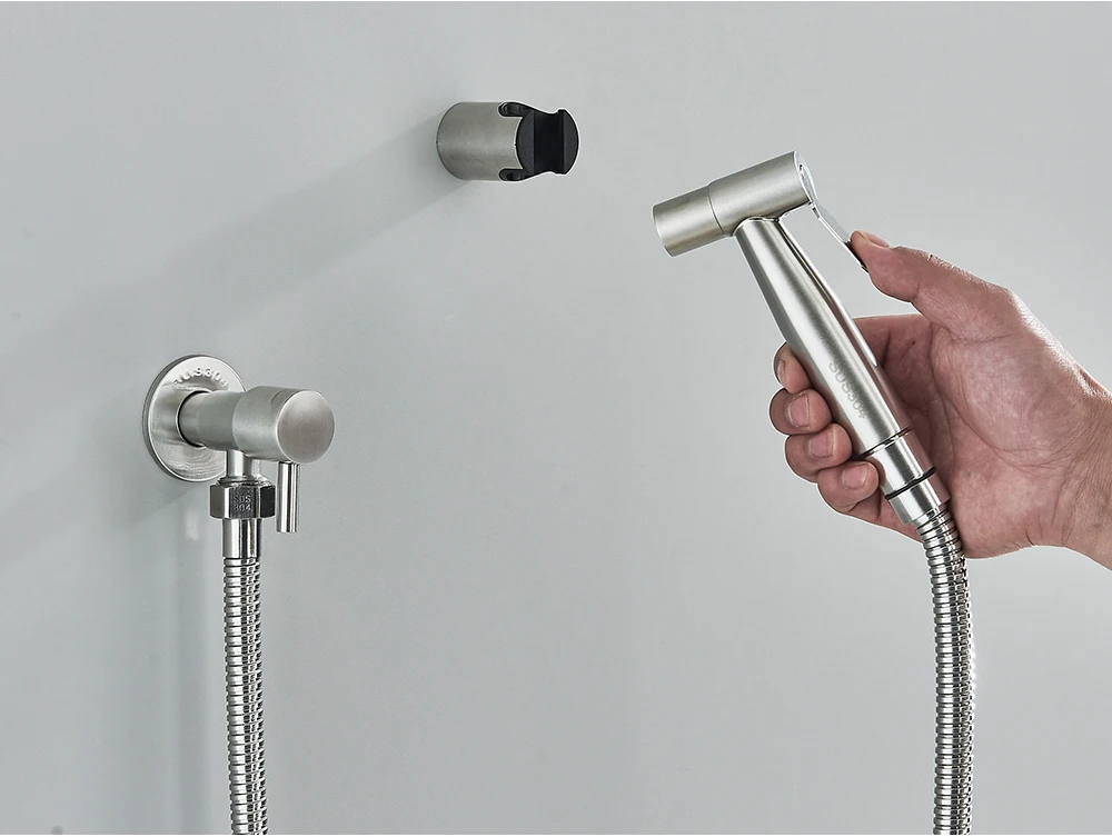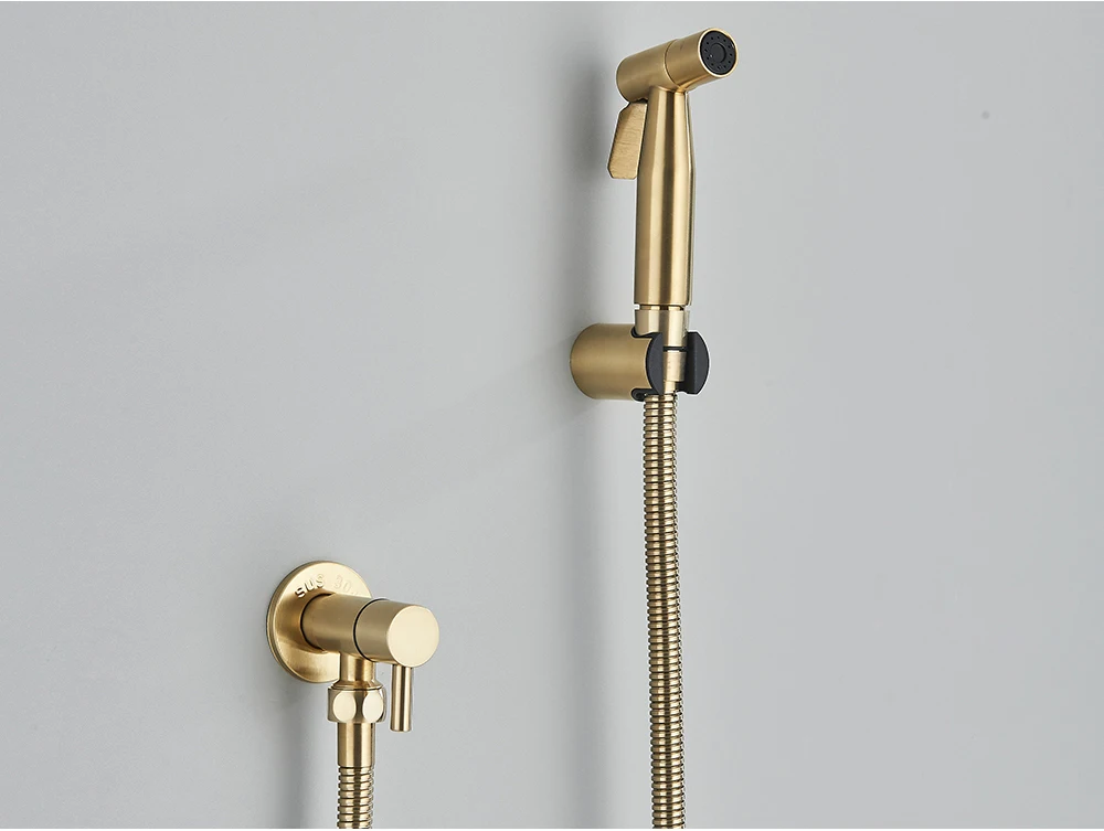 แปรงทองมือถือห้องน้ํา Bidet Sprayer สแตนเลส Bidet ฝักบัวสุขอนามัยห้องน้ํา Bidet Sprayer น้ําเย็น