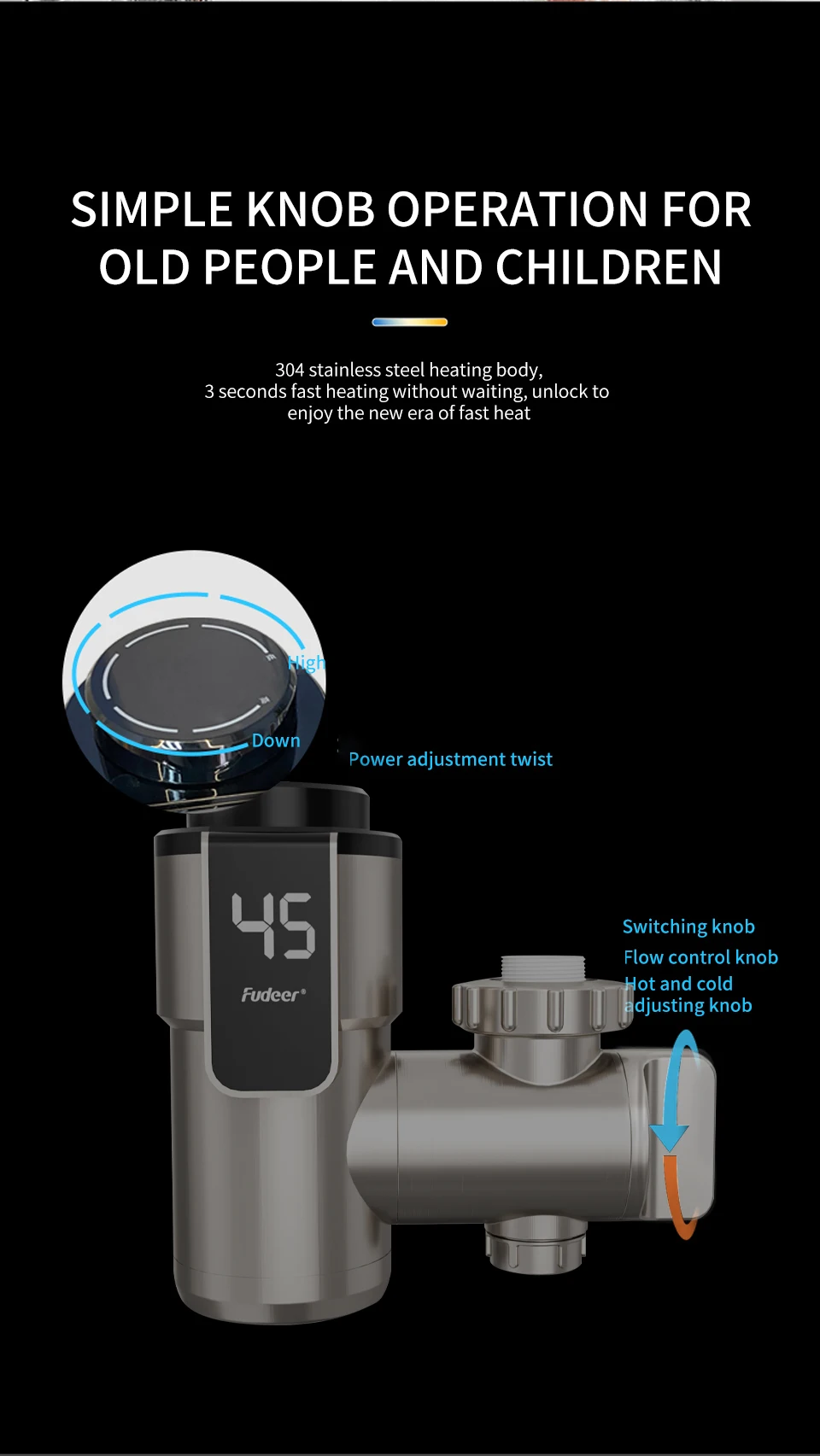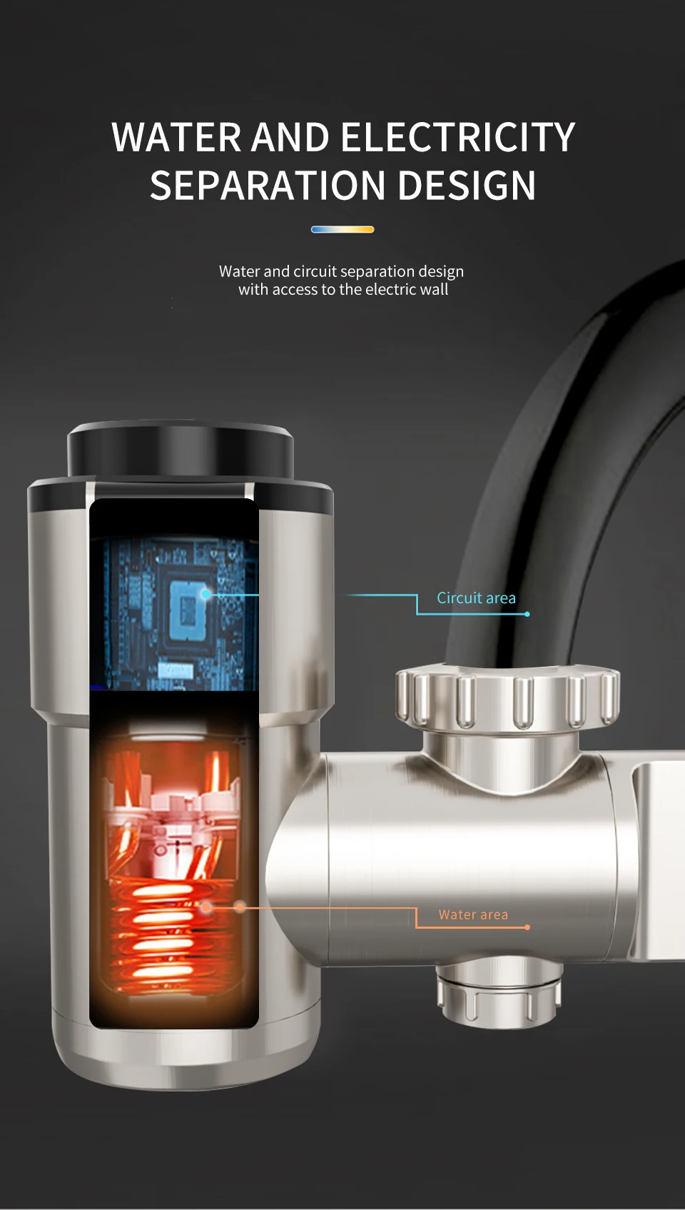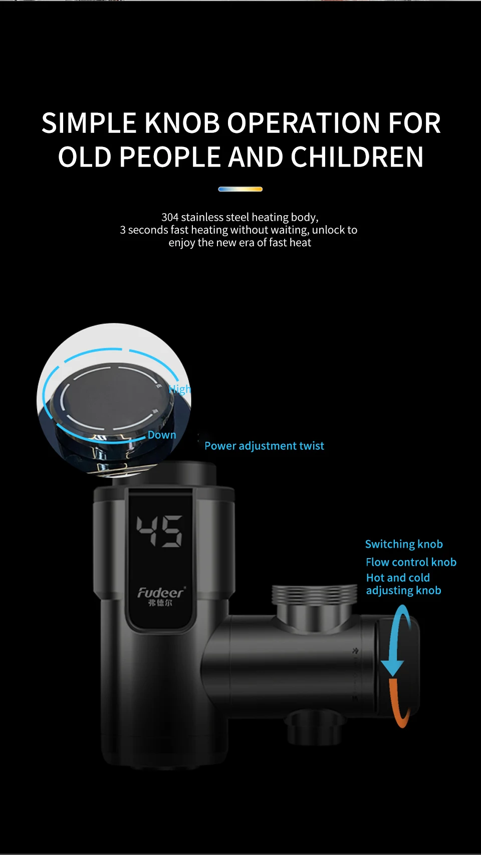 ☆【อุณหภูมิที่เพิ่มขึ้นอย่างรวดเร็ว】: ก๊อกน้ําทําความร้อนใช้การออกแบบเครื่องทําความร้อนแบบหมุนสามมิติแกนทําความร้อนเป็นสแตนเลส 304 ซึ่งสามารถให้ความร้อนได้อย่างรวดเร็ว ทนต่อการสึกหรอและการกัดกร่อน ไม่ผลิตคราบ และไม่สร้างตะกรันง่าย