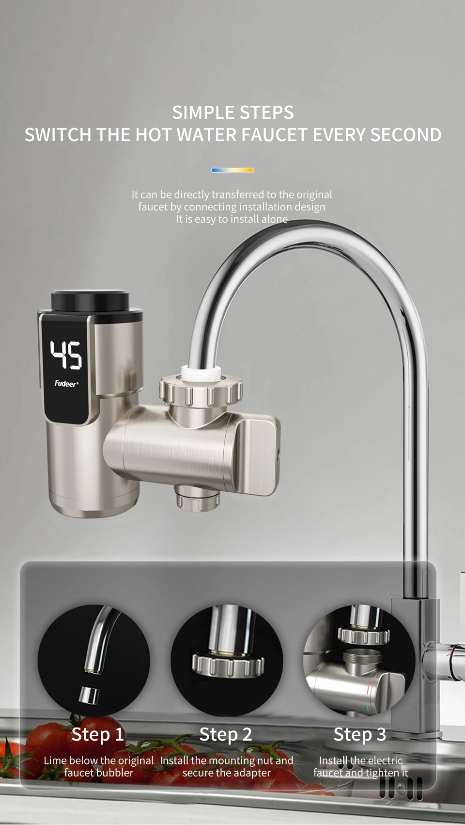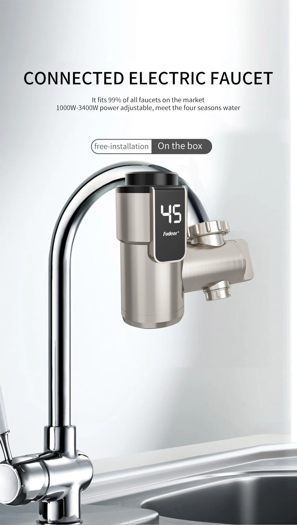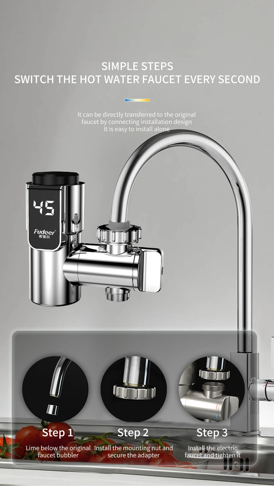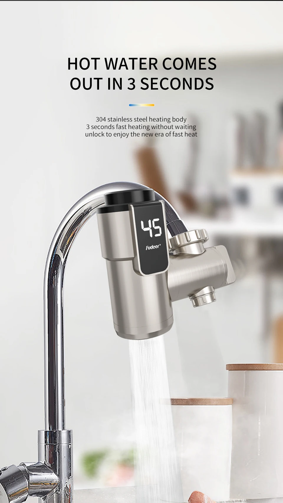 Fudeer เครื่องทําน้ําอุ่นไฟฟ้าก๊อกน้ําห้องครัว Conector น้ําร้อนทันที TAP ADAPTER 220V เครื่องทําน้ําอุ่นอุปกรณ์ห้องน้ํา 1