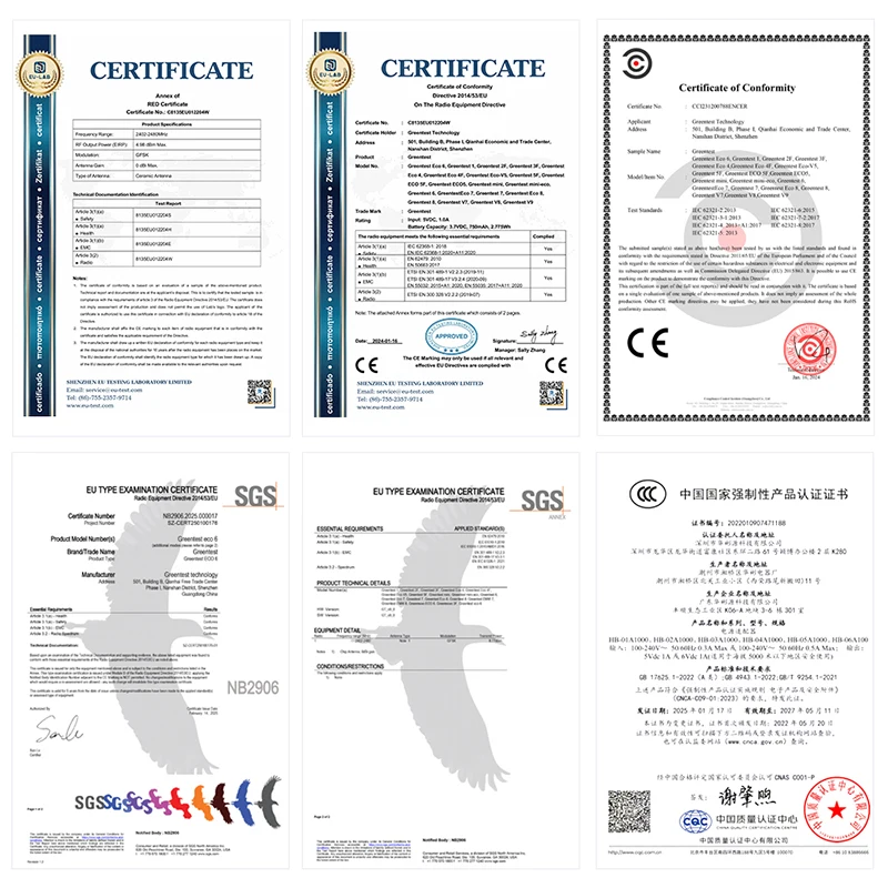 อุปกรณ์ Greentest มีใบรับรองระดับสากล เช่น CE, CQC, SGS และรางวัลในงานแสดงสินค้านานาชาติ เช่น Green Innovation Technology Award