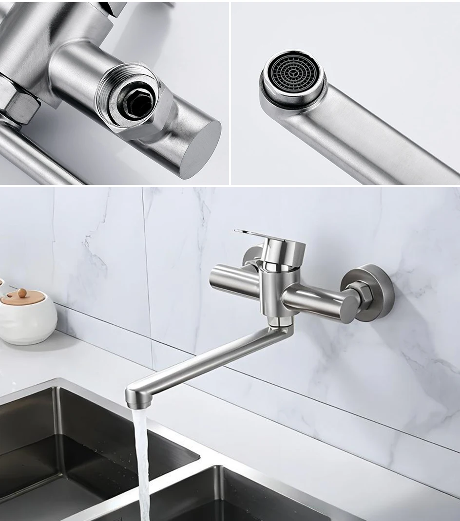 | Type | Wall-mounted kitchen faucet, Cold & Hot Water Faucet, 180° rotate Kitchen Faucet |