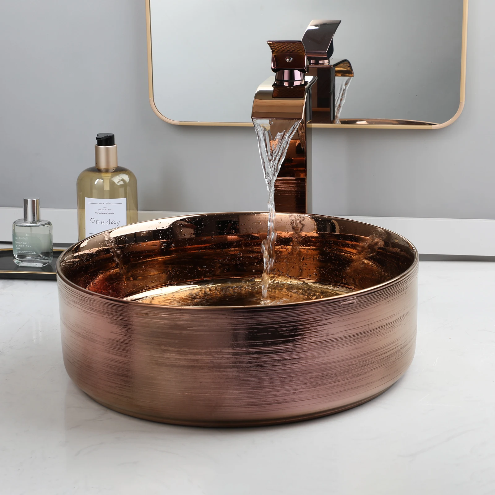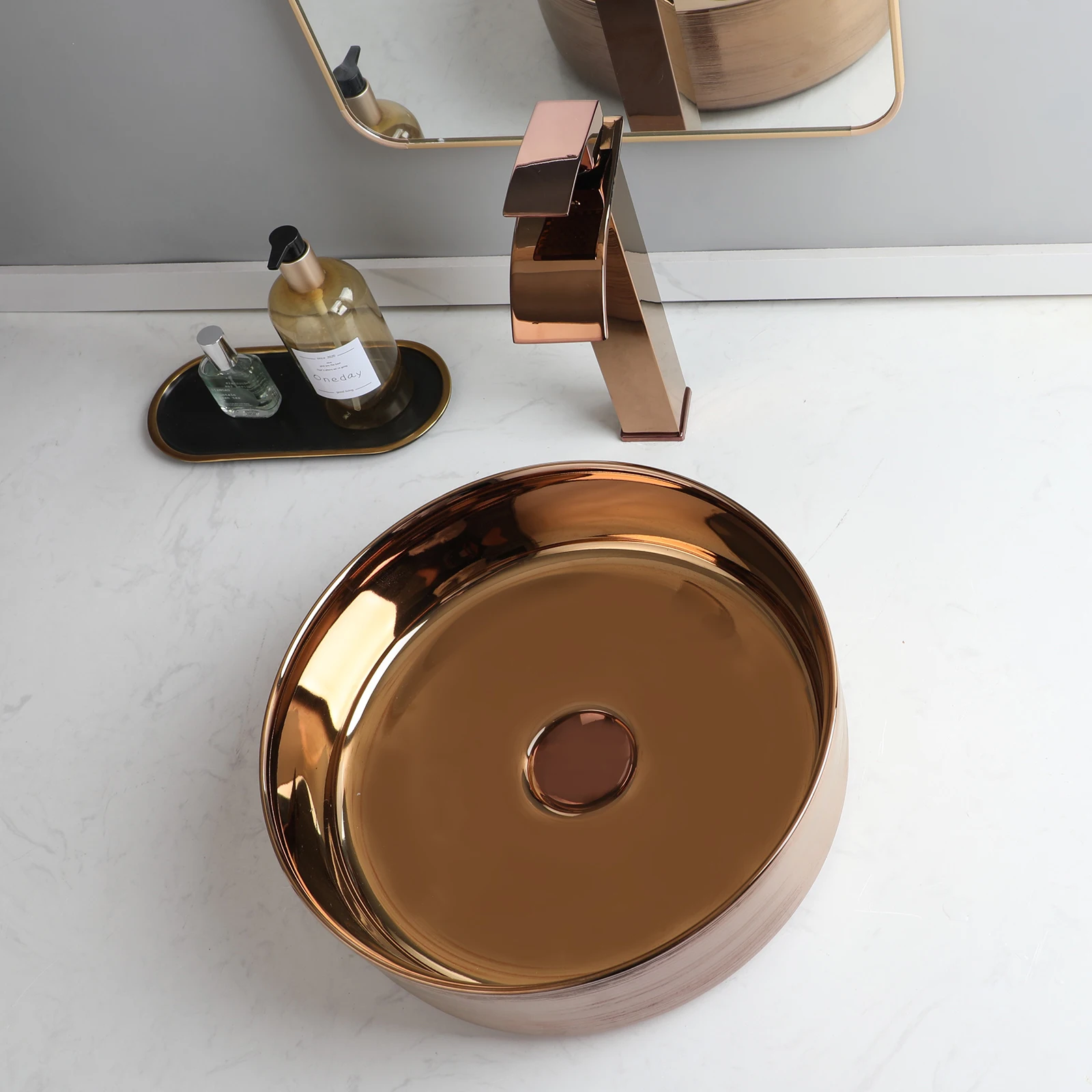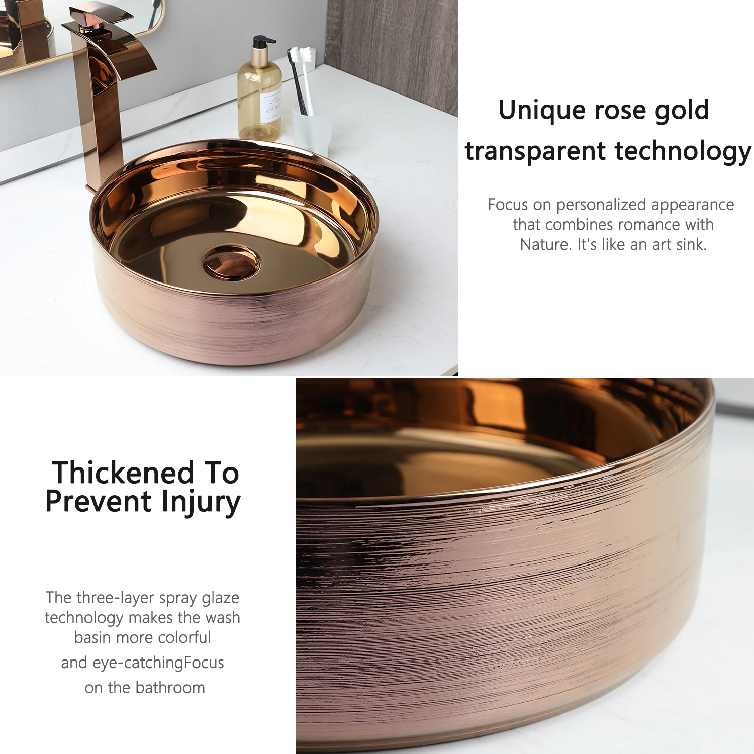 - ★【RoseGold Appearance Design & European Modern Luxury Style】The round vessel sink pays more attention to the personalized appearance, which combines romance and nature.It seems to be a work of art, which inadvertently gives people a sense of shine and becomes the eye-catching focus in the bathroom.Add high-style to any bathroom or bar vanity with this oval bathroom sink, let the bathroom life exude its unique charm.