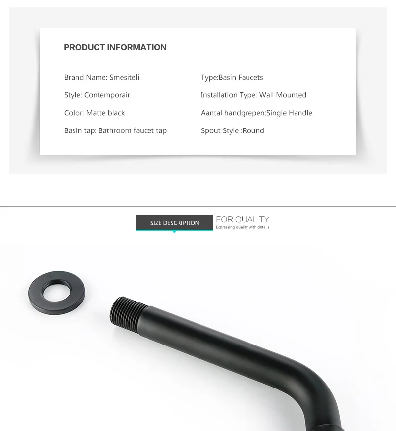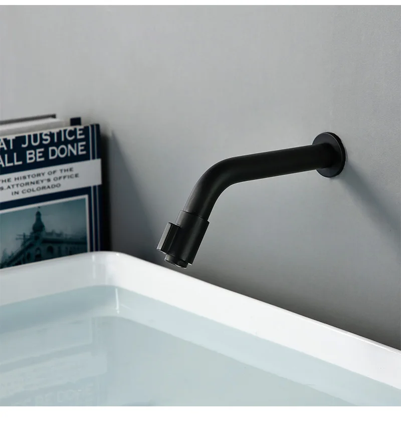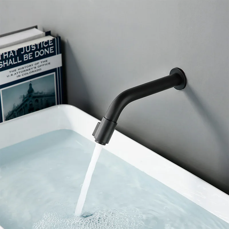 Smesiteli โมเดิร์น Matte สีดําก๊อกน้ําน้ําเย็นรอบติดผนัง Single Hole อ่างล้างหน้าผสมสําหรับห้องน้ําห้องครัว