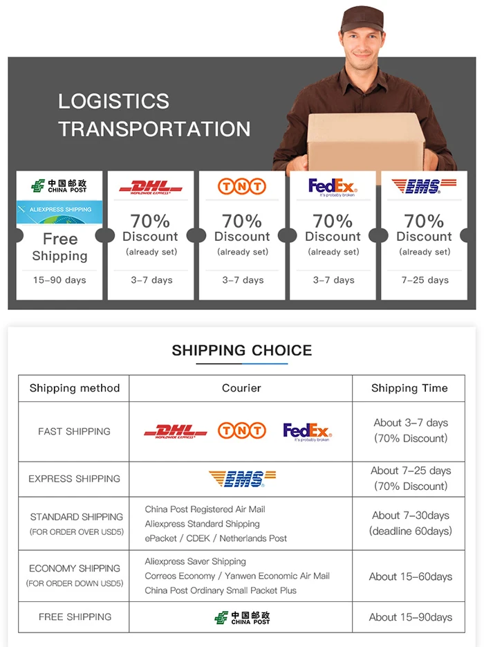 – หากคุณต้องการวิธีจัดส่งแบบอื่น โปรดอย่าลังเลที่จะติดต่อเรา ขอบคุณมาก(โปรดทราบ: อาจมีค่าใช้จ่ายเพิ่มเติม เช่น ค่าบริการด่วน)