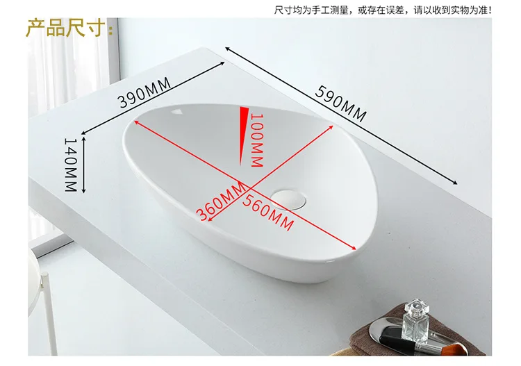 | รูปทรงอ่างล้างหน้า | วงรี |