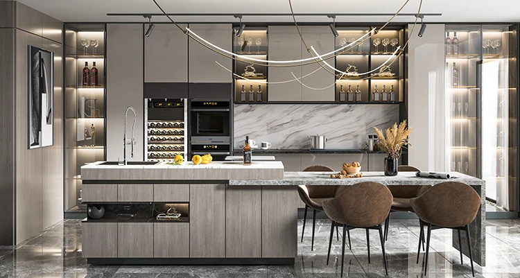 ดีไซน์ทันสมัย ห้องครัวสําหรับอพาร์ทเมนต์ ตู้ครัวฝรั่งเศส ตู้ครัวลามิเนต |