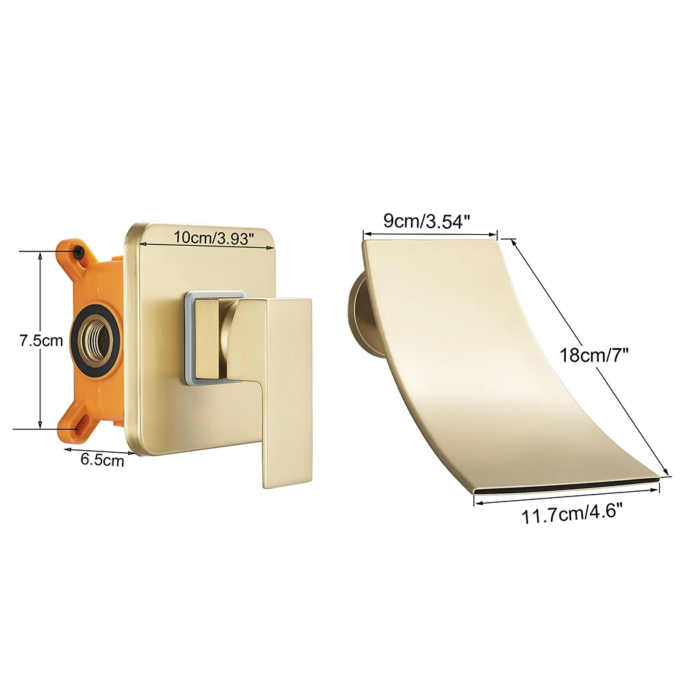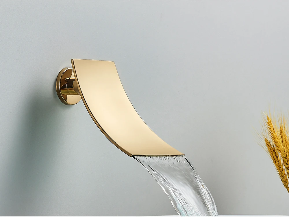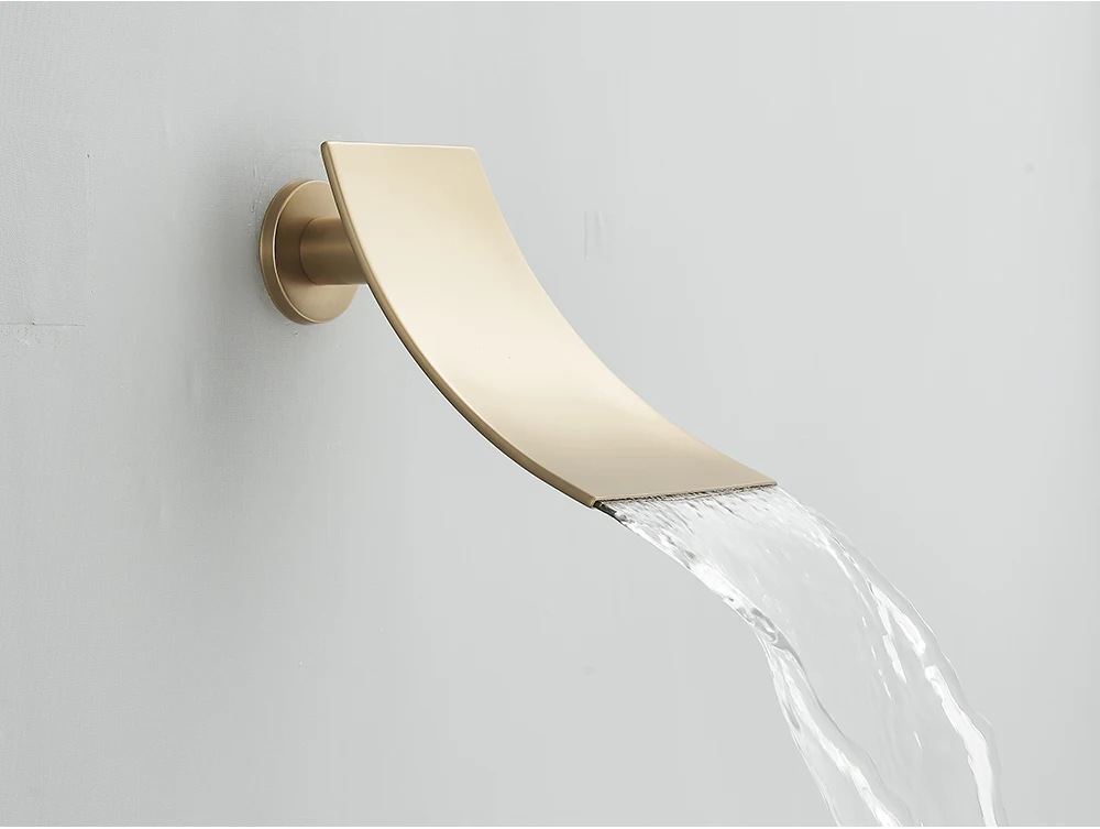 POIQIHY Brushed Golden ก๊อกน้ําอ่างล้างหน้าเดี่ยวห้องน้ําอ่างล้างหน้าแตะน้ําตก Spout ก๊อกน้ําอาบน้ําปกปิดวาล์วอาบน้ํา