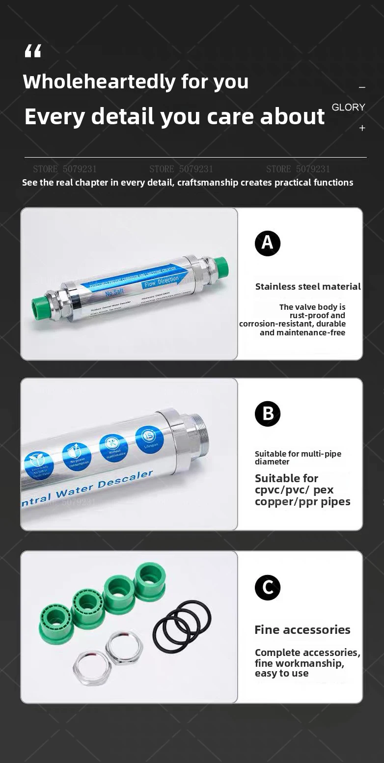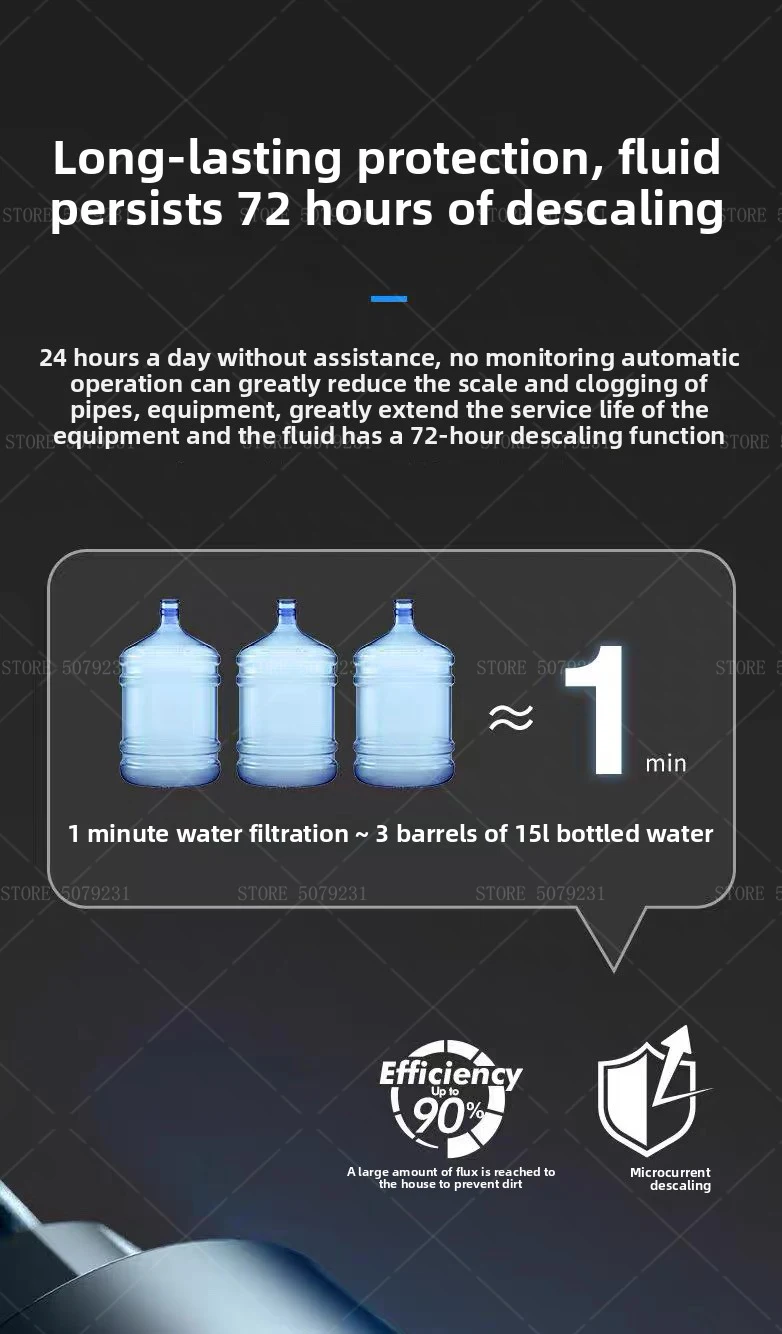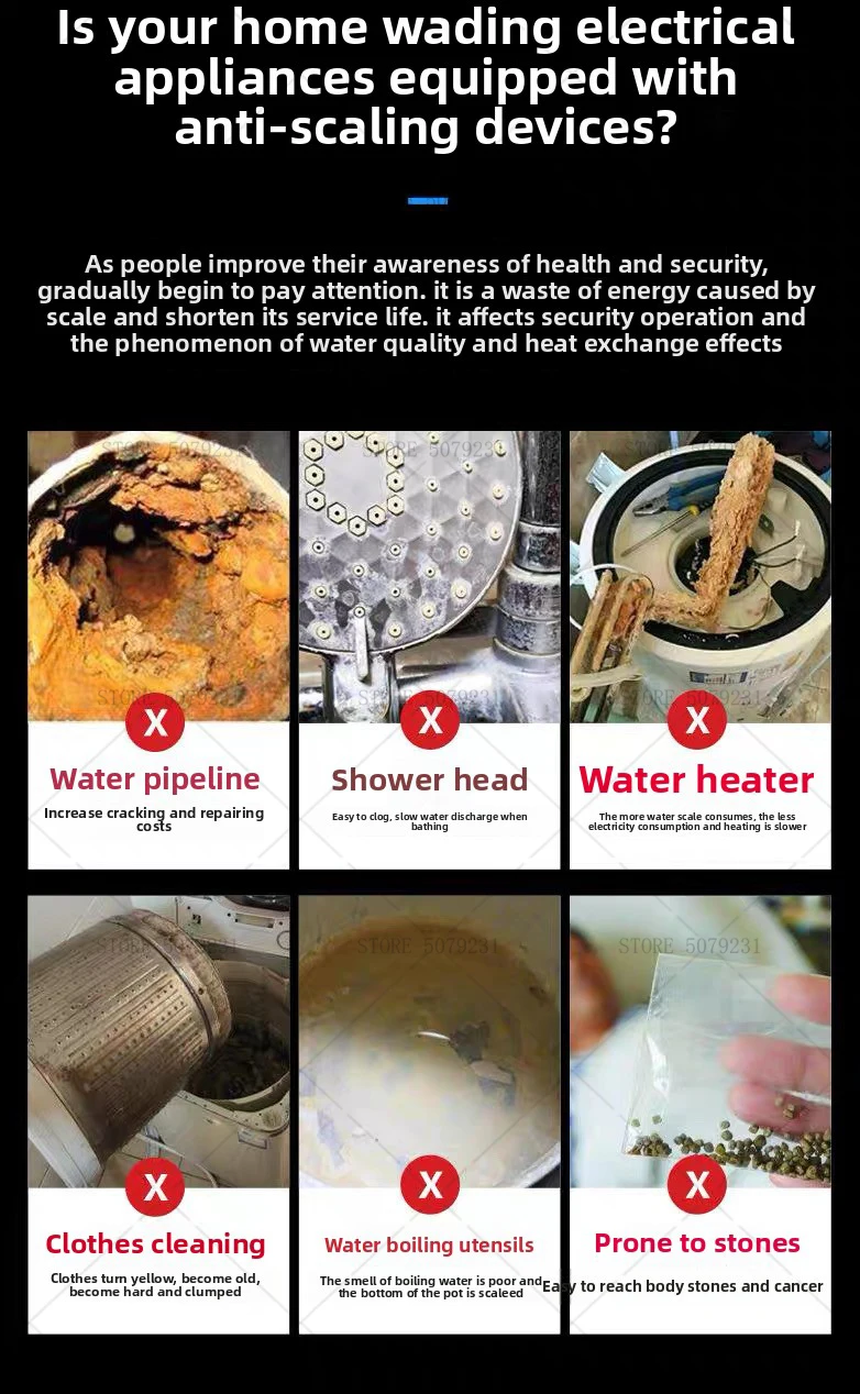 3. หมายเหตุ: ไม่ลดค่า TDS (ppm): (ช่วยป้องกันการเกิดคราบตะกรันจากไอออนแคลเซียมและแมกนีเซียม และช่วยลดการก่อตัวของสารประกอบ แต่จะไม่กำจัดไอออนแคลเซียมและแมกนีเซียมออกไปเหมือนกับเครื่องปรับสภาพน้ำแบบดั้งเดิม)