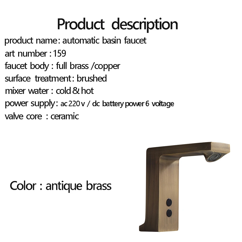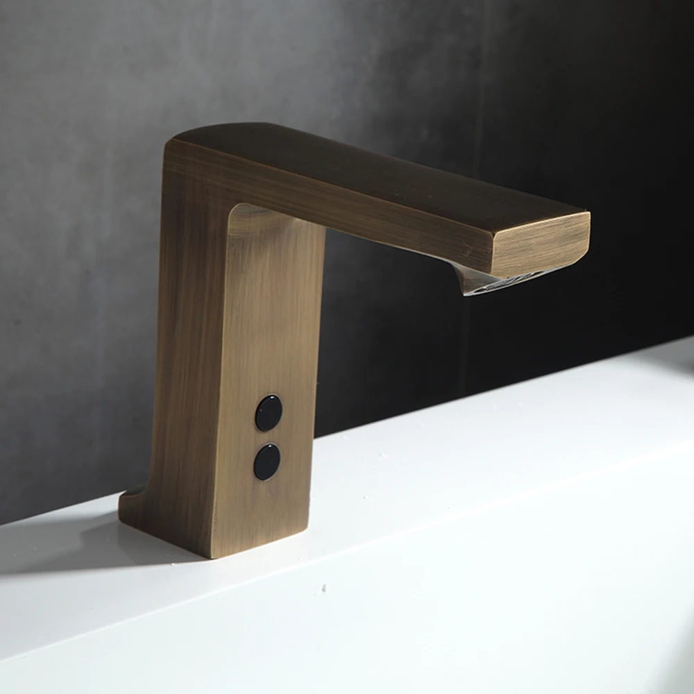 Smart touchless โบราณทองเหลืองก๊อกน้ำก๊อกน้ำ Body ทองเหลืองทองแดงผสมน้ำ Cold & HOT AC 220 V และ DC แบตเตอรี่6แรงดันไฟฟ้าเหมาะสำหรับโรงแรม, shopping Mall และ Public Area