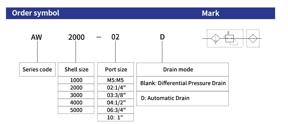 ตัวควบคุมตัวกรองอากาศและตัวแยกน้ำมันรุ่น AW Series เป็นโซลูชันที่แข็งแกร่งและเชื่อถือได้สำหรับการรักษาความบริสุทธิ์ของระบบจ่ายอากาศอัดของคุณตัวควบคุมตัวกรองนี้ผลิตจากอะลูมิเนียมคุณภาพสูง ได้รับการออกแบบมาให้ทนทานต่อสภาพแวดล้อมทางอุตสาหกรรมที่รุนแรงด้วยตัวเลือกขนาดพอร์ตที่หลากหลาย ได้แก่ G1/4, G3/8 และ G1/2 ทำให้สามารถใช้งานร่วมกับระบบนิวเมติกส์ได้หลากหลาย จึงมั่นใจได้ว่าจะสามารถผสานรวมเข้ากับการตั้งค่าที่มีอยู่ของคุณได้อย่างราบรื่น