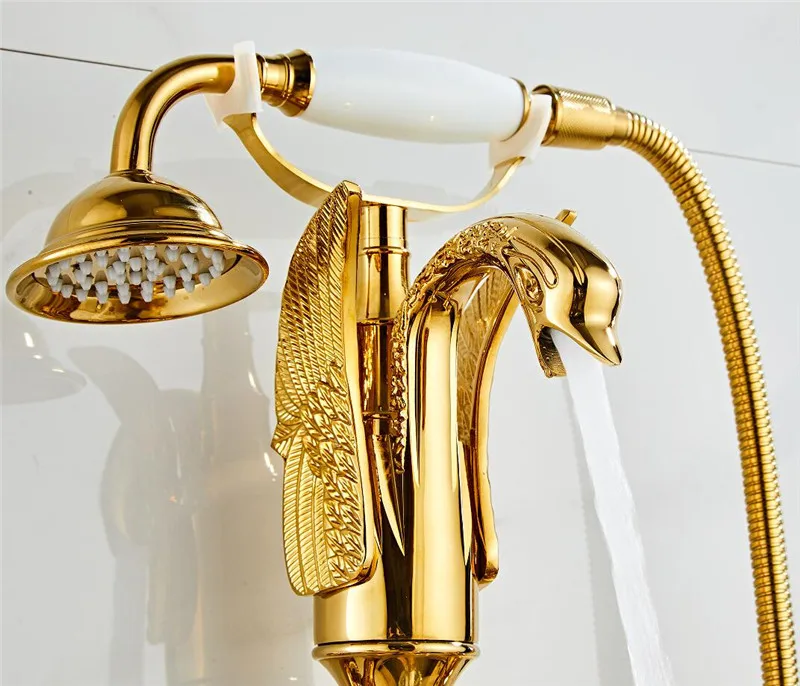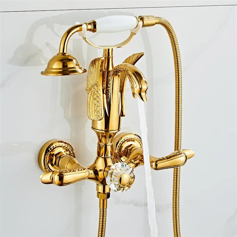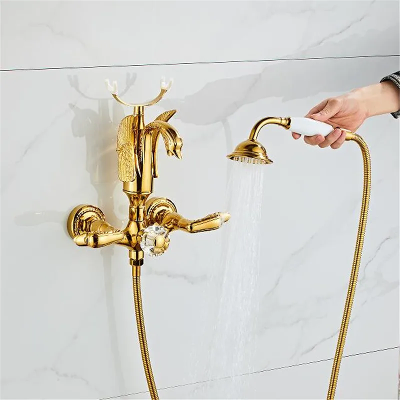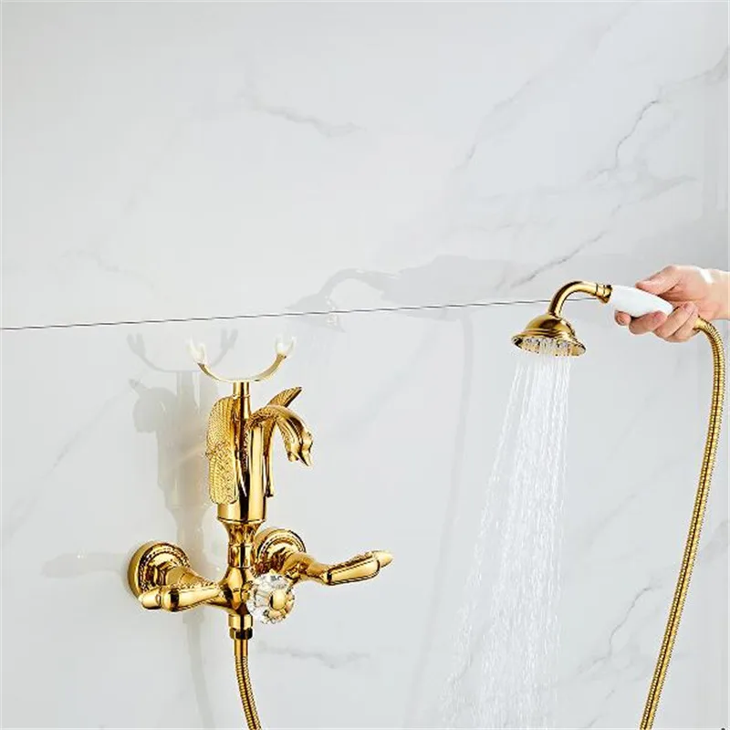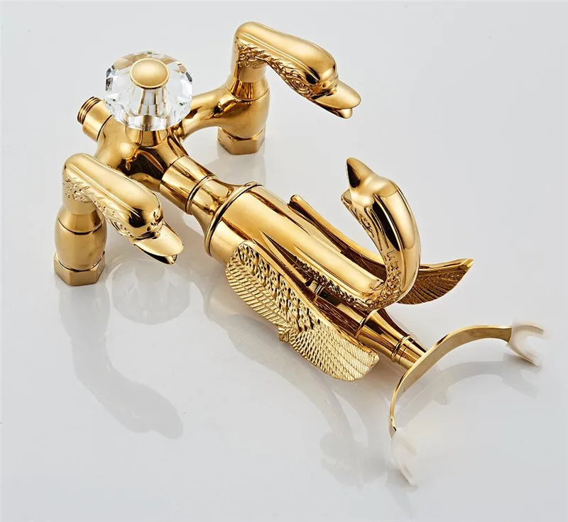 Tuqiu GOLD ฝักบัวและอ่างอาบน้ำก๊อกน้ำทอง Swan อ่างอาบน้ำก๊อกน้ำ, ห้องน้ำเย็นและ Hot Bath และ Shower Mixer TAP