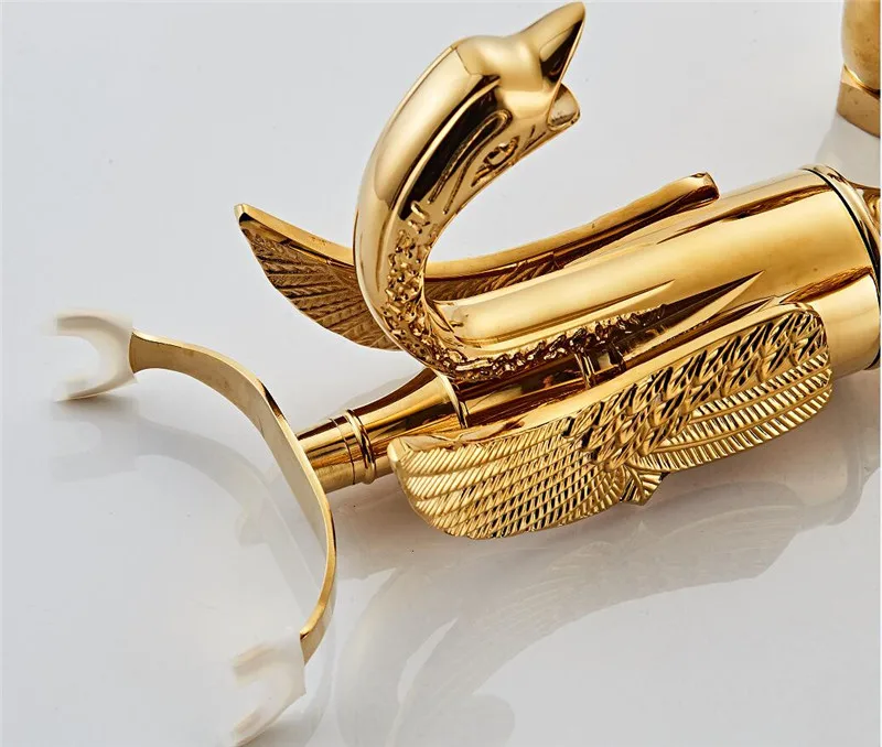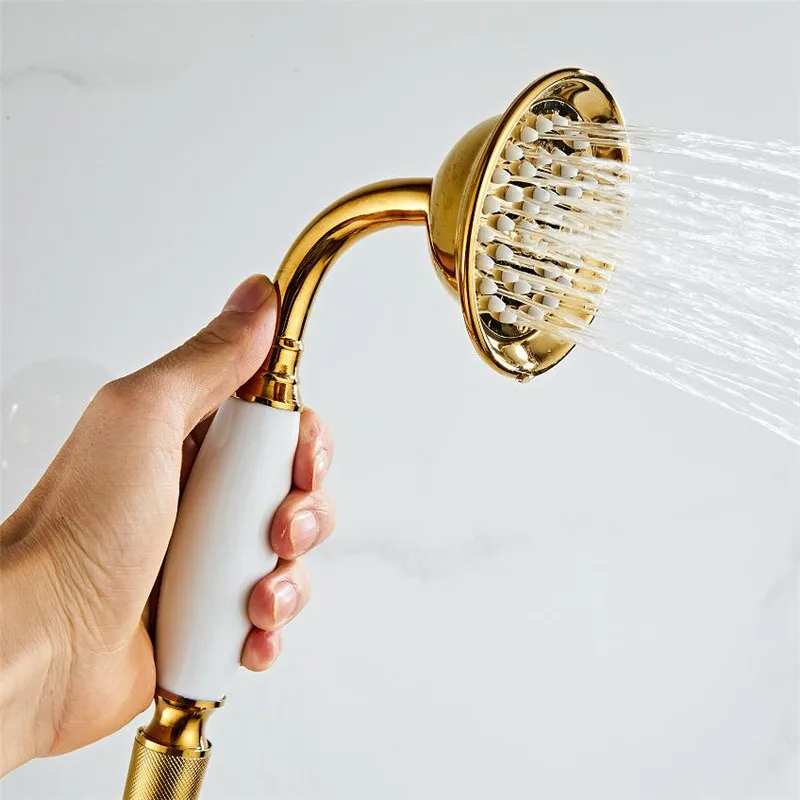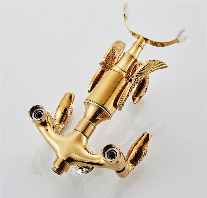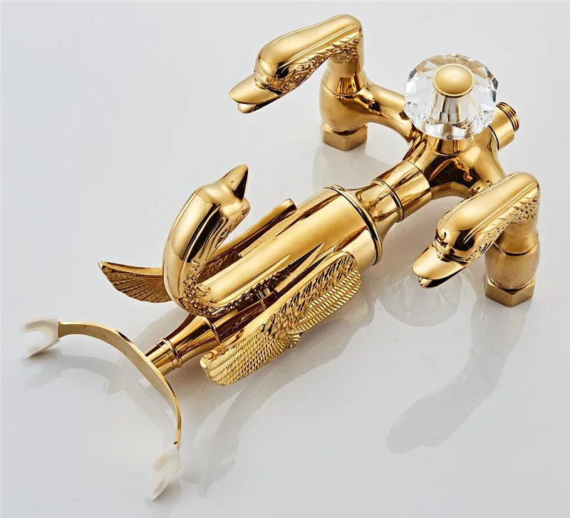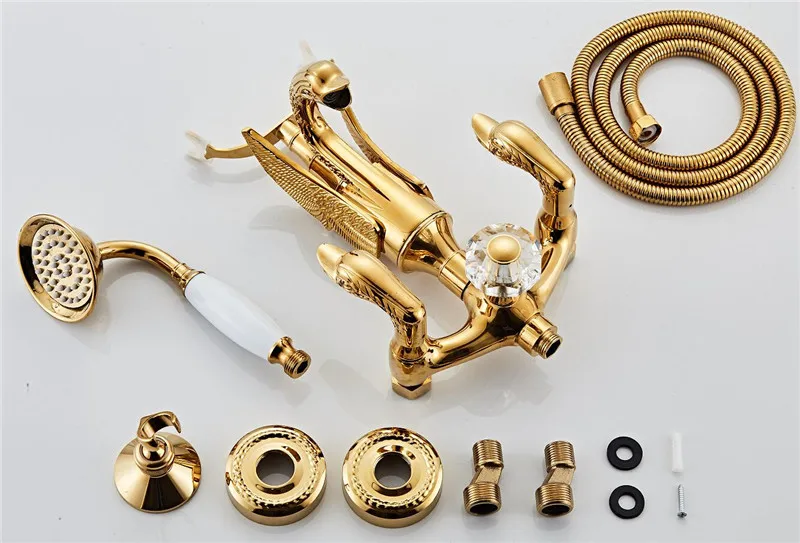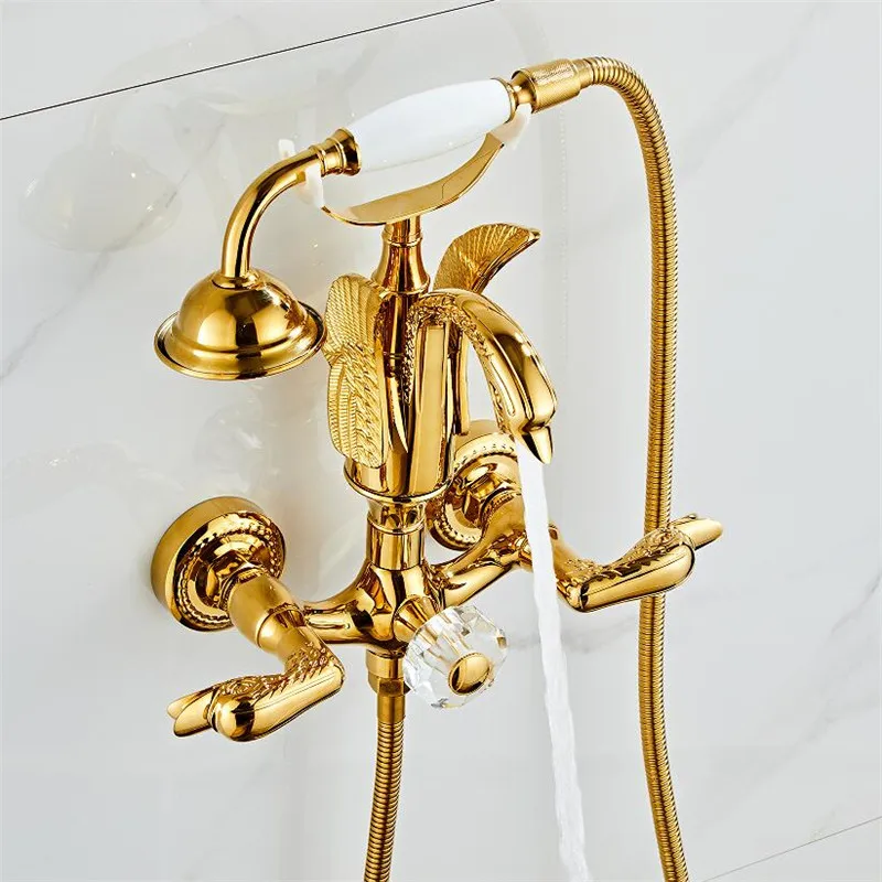 Tuqiu GOLD ฝักบัวและอ่างอาบน้ำก๊อกน้ำทอง Swan อ่างอาบน้ำก๊อกน้ำ, ห้องน้ำเย็นและ Hot Bath และ Shower Mixer TAP